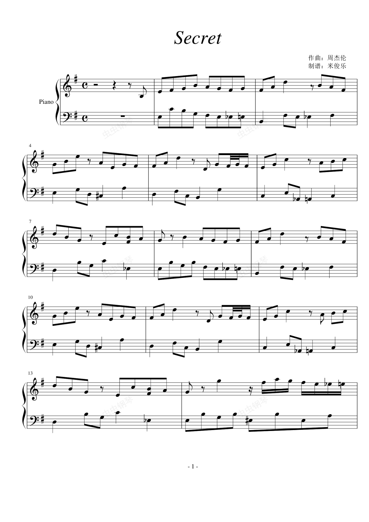 钢琴谱:Secret