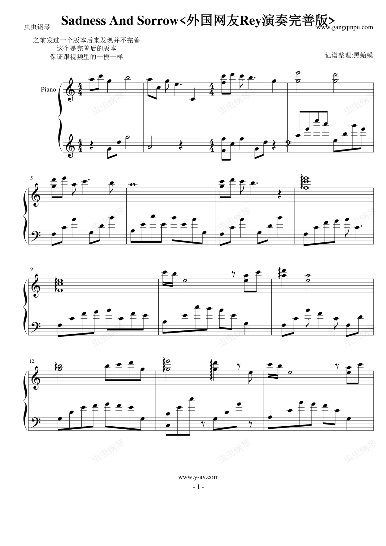 sadness and sorrow外国网友rey演奏完善版