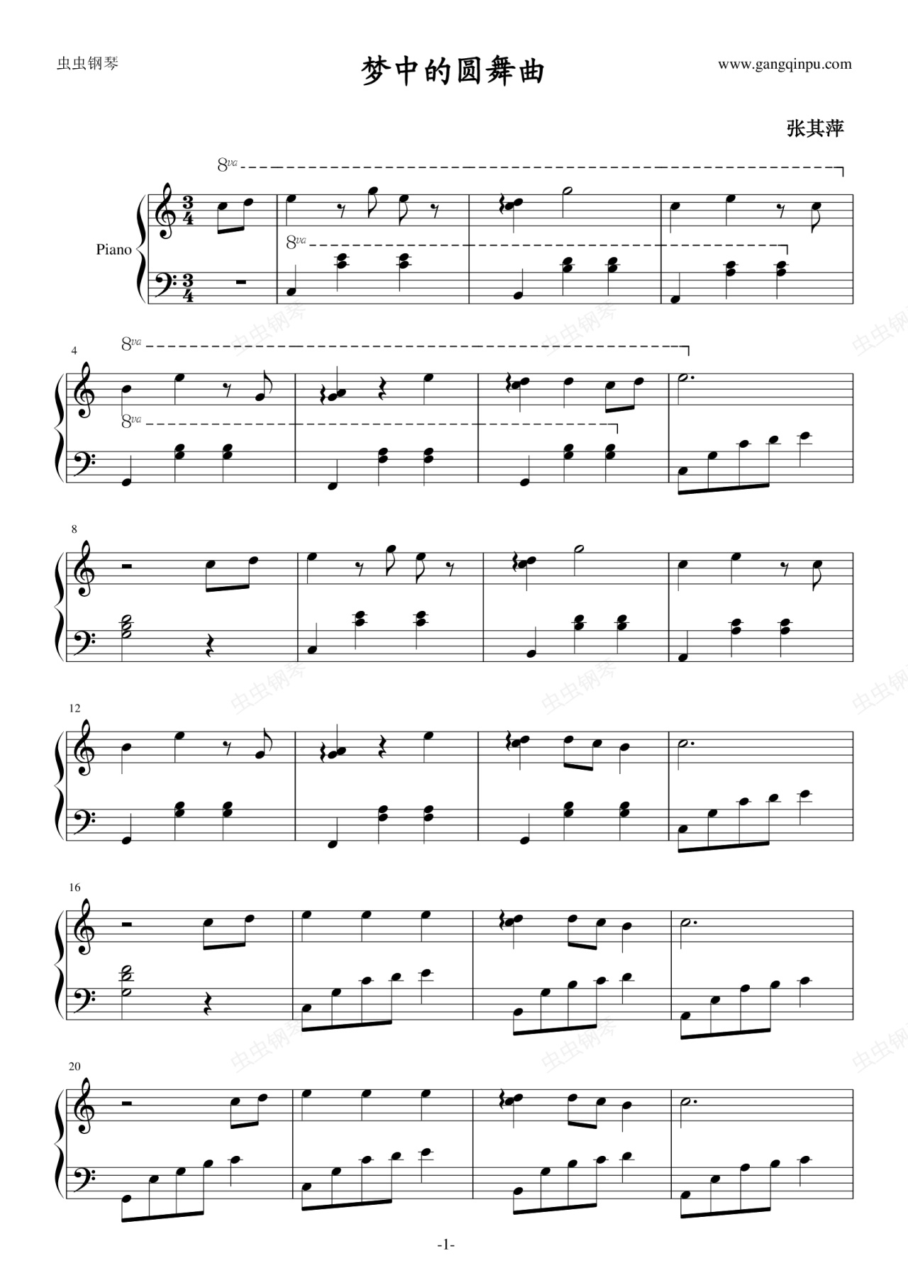 钢琴谱:梦中的圆舞曲