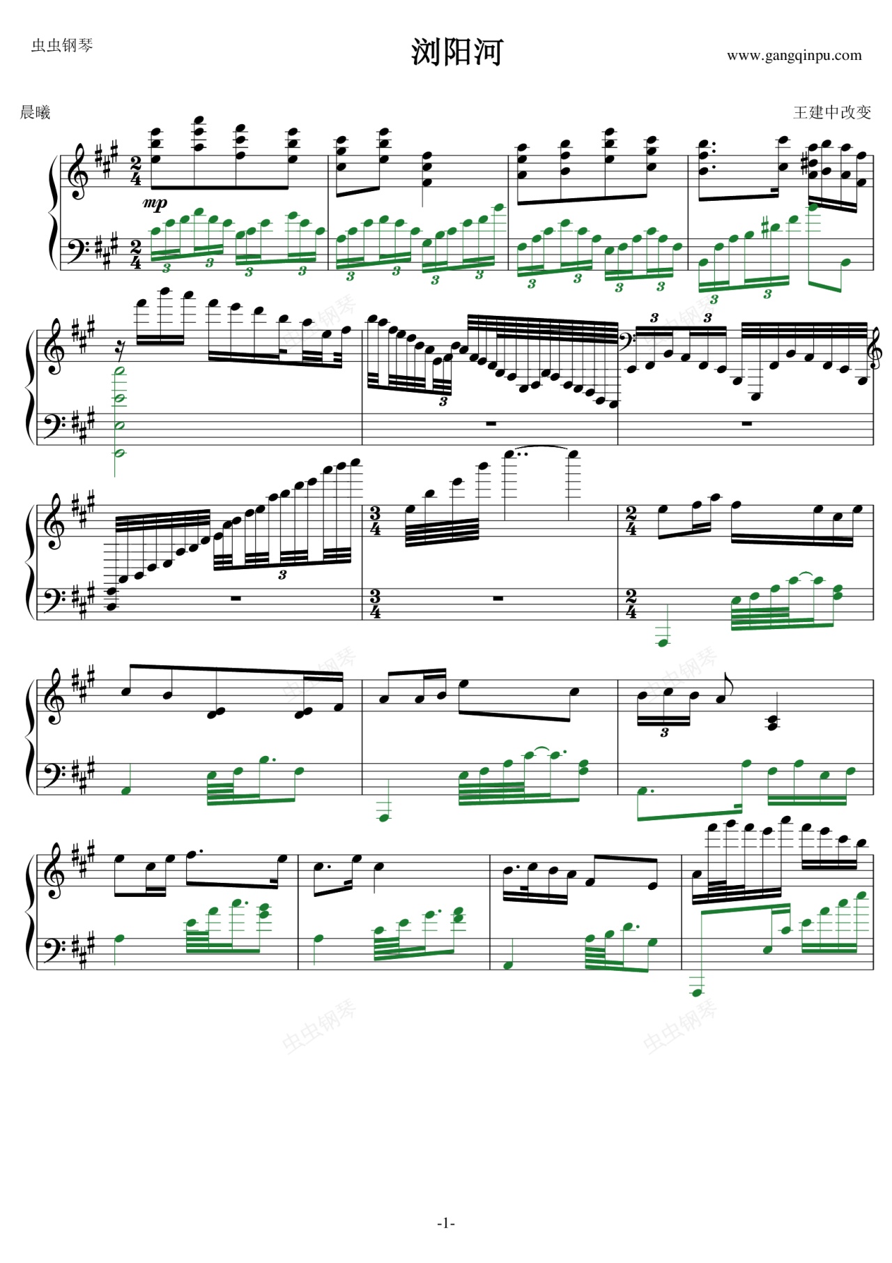 钢琴谱:浏阳河-王建中改编
