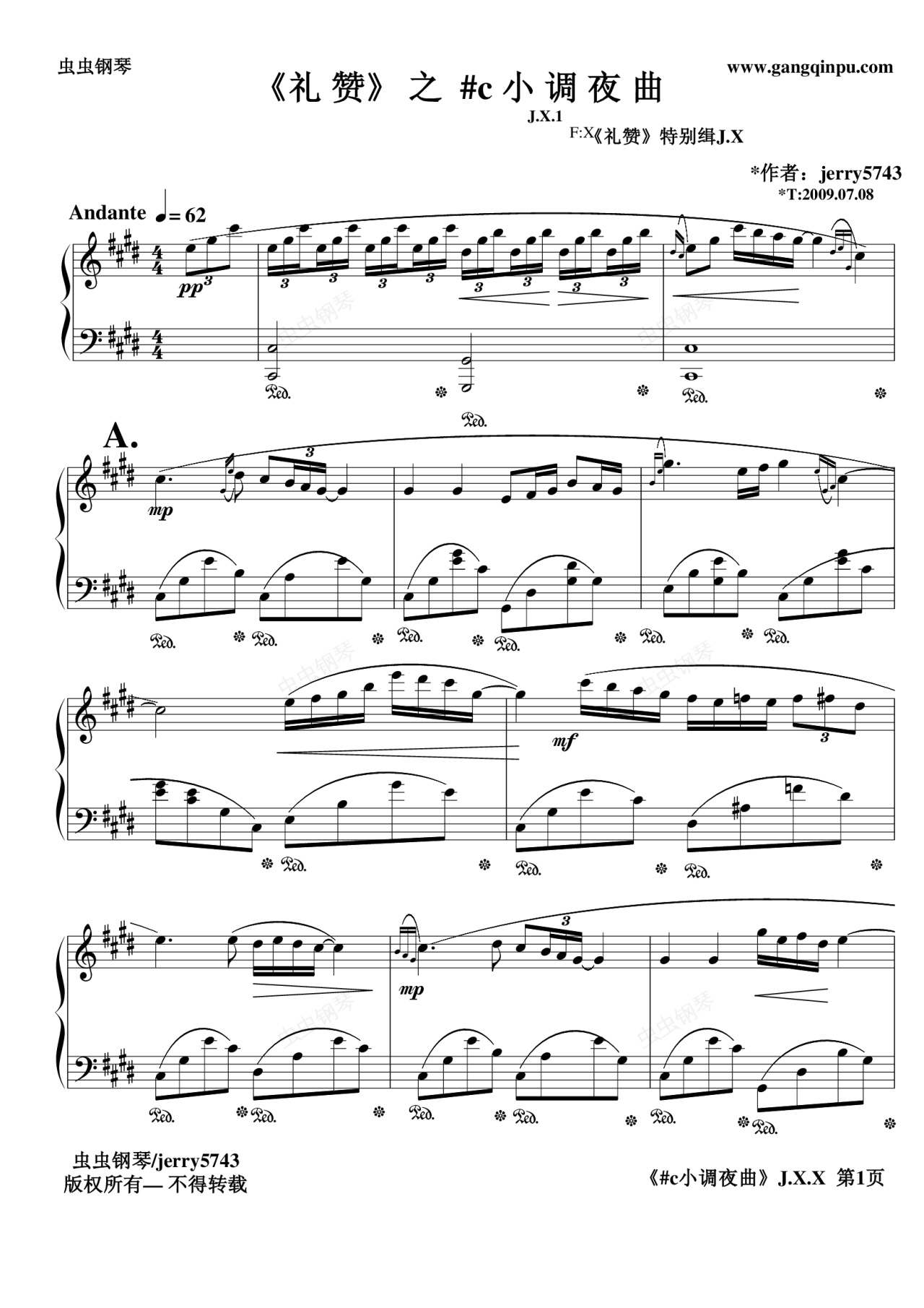 钢琴谱:礼赞之#c小调夜曲J.X.1