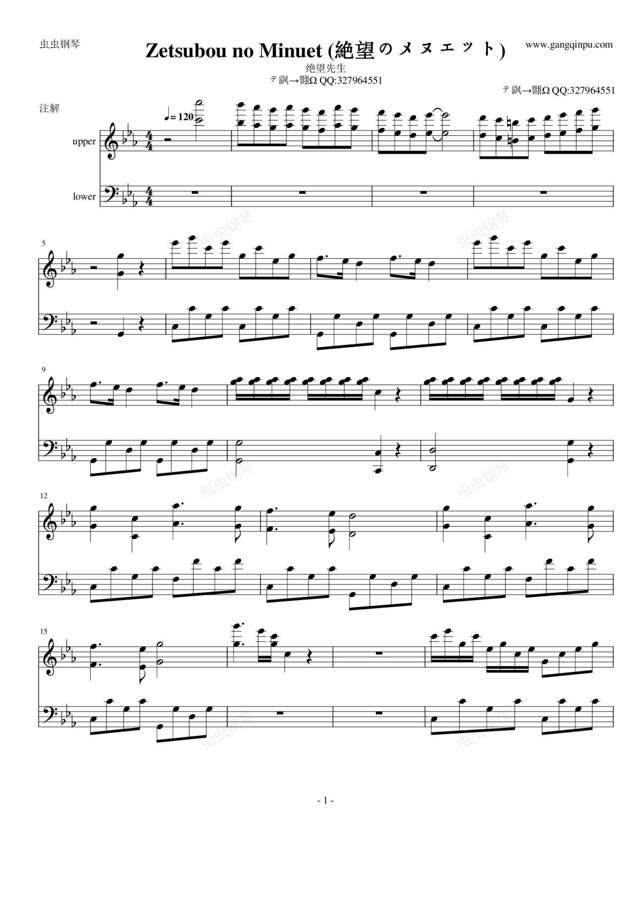 钢琴谱:绝望先生插曲Zetsubou no Minuet
