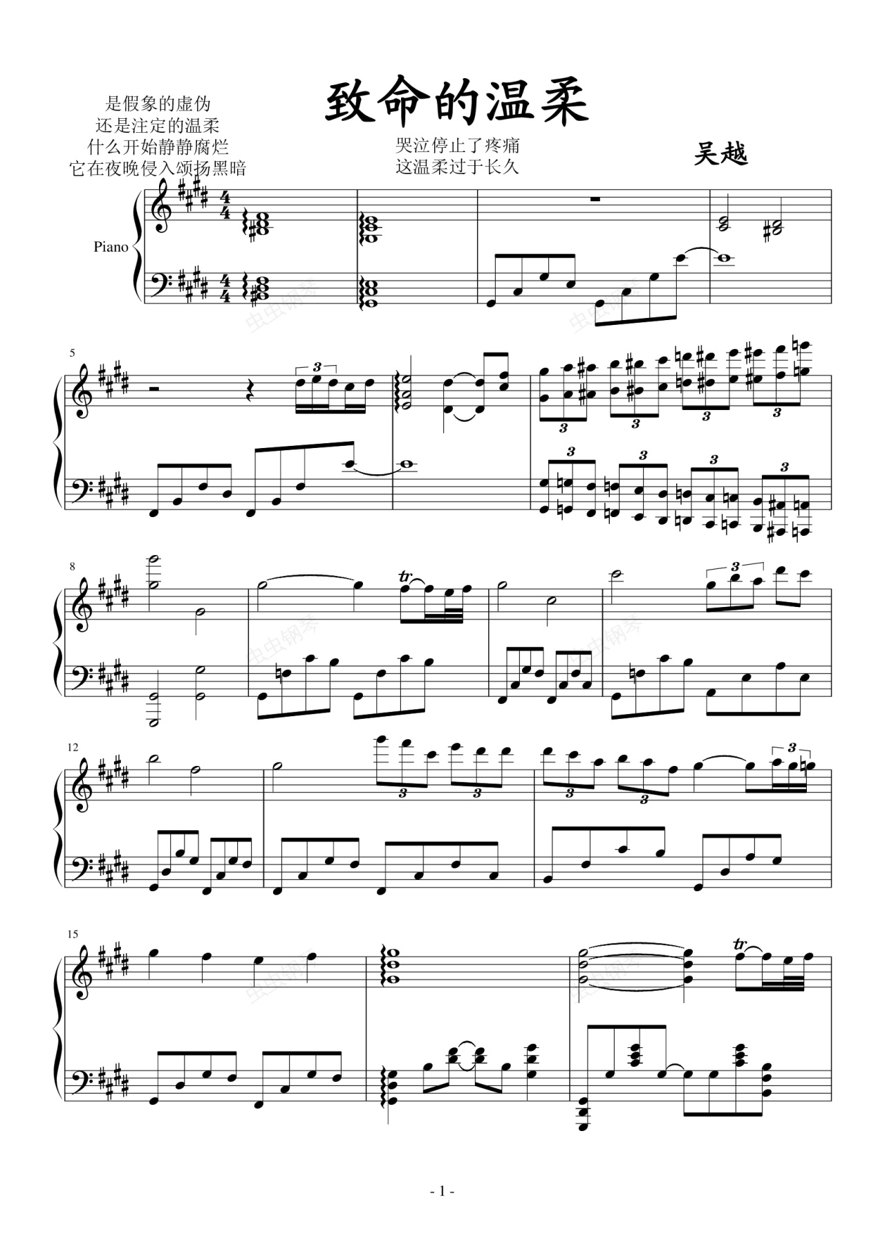 钢琴谱:致命的温柔