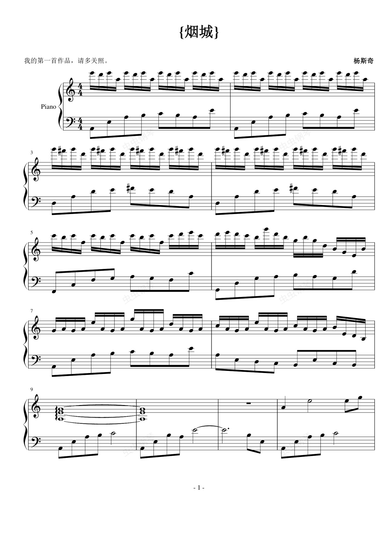 钢琴谱:烟城