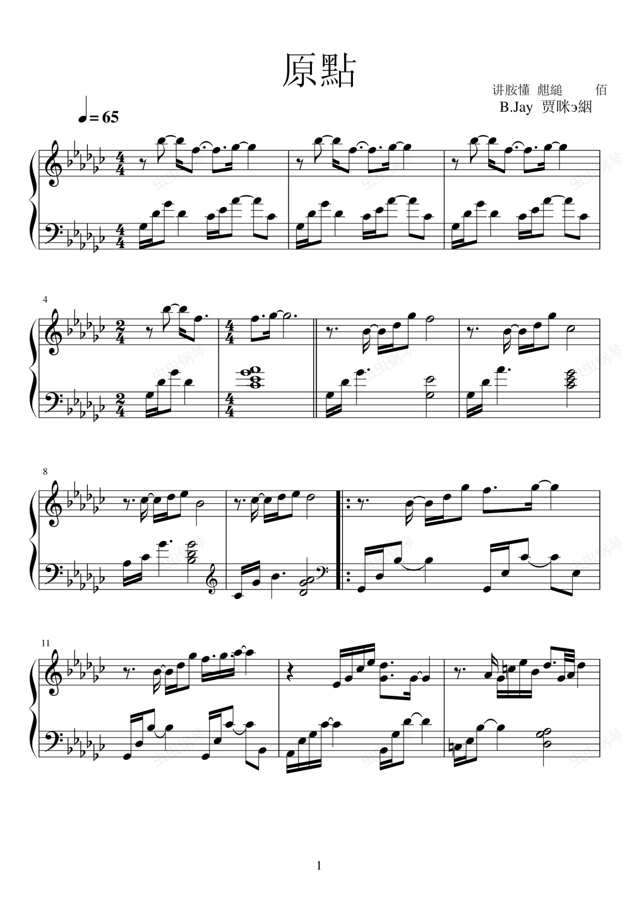 钢琴谱:原點(孫燕姿 蔡健雅).