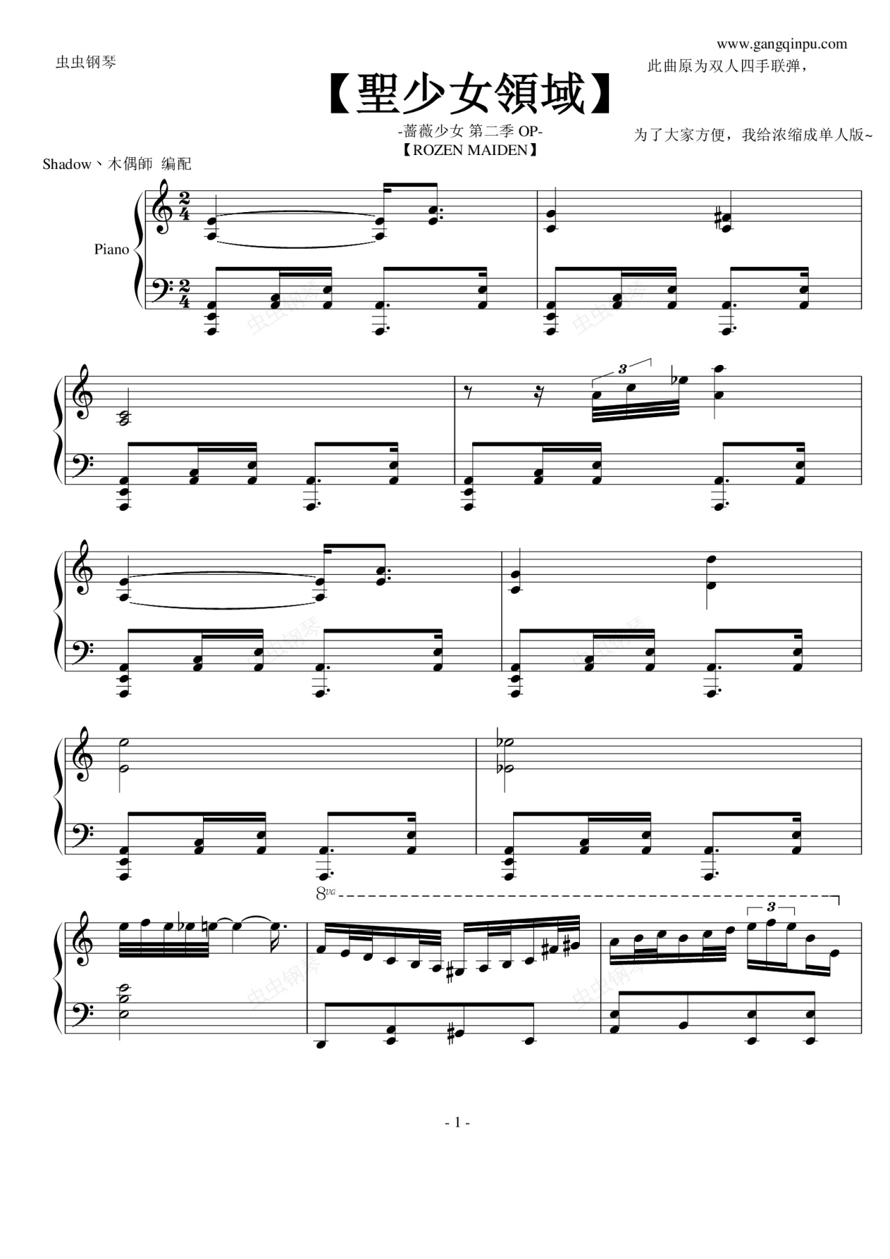 钢琴谱:圣少女领域-蔷薇少女第二季主题曲
