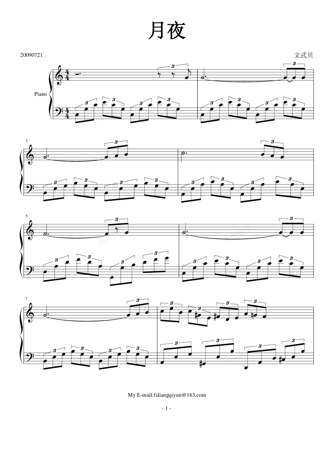 钢琴谱:月夜