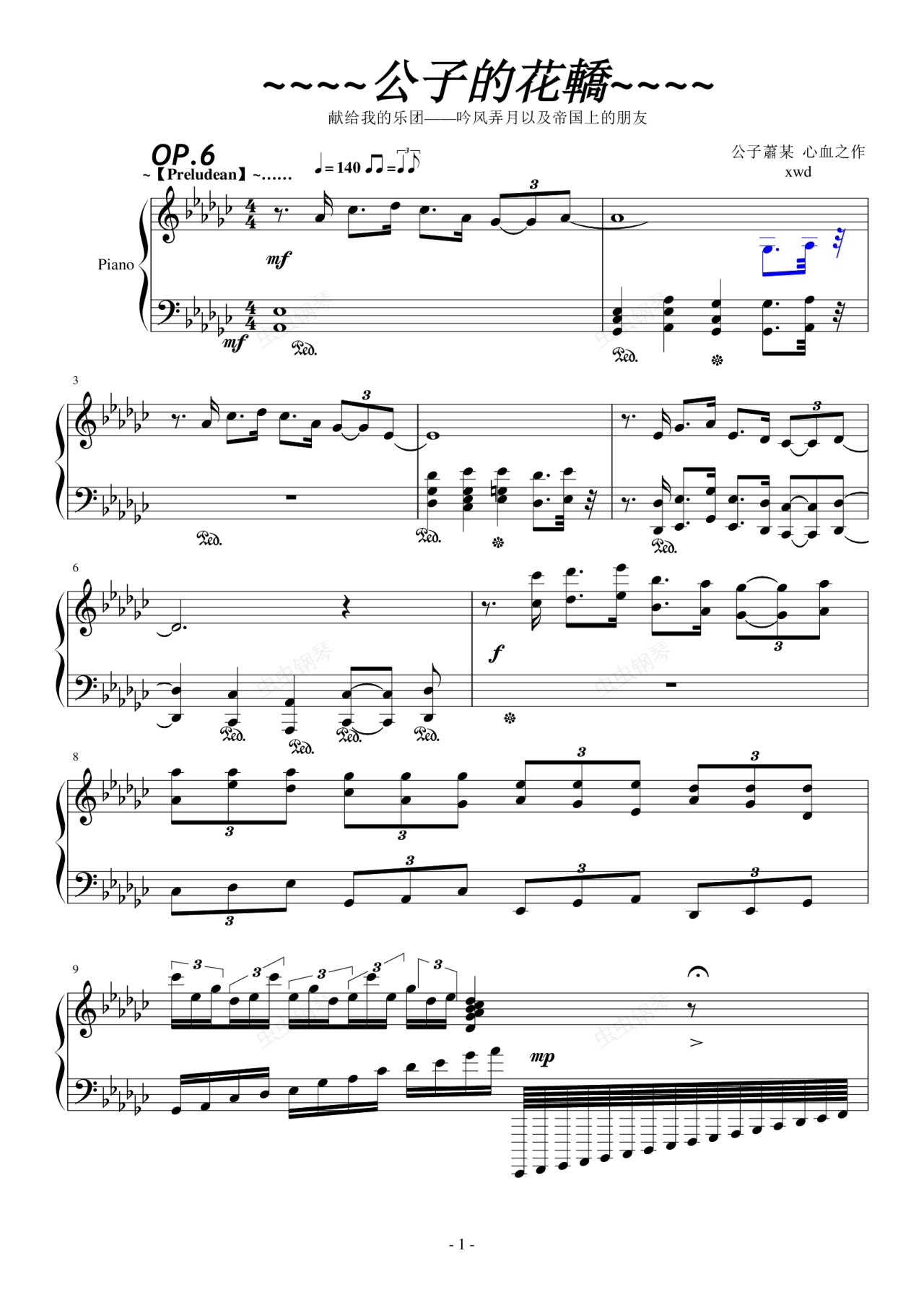钢琴谱:--公子的花轿--JAZZ+中國風