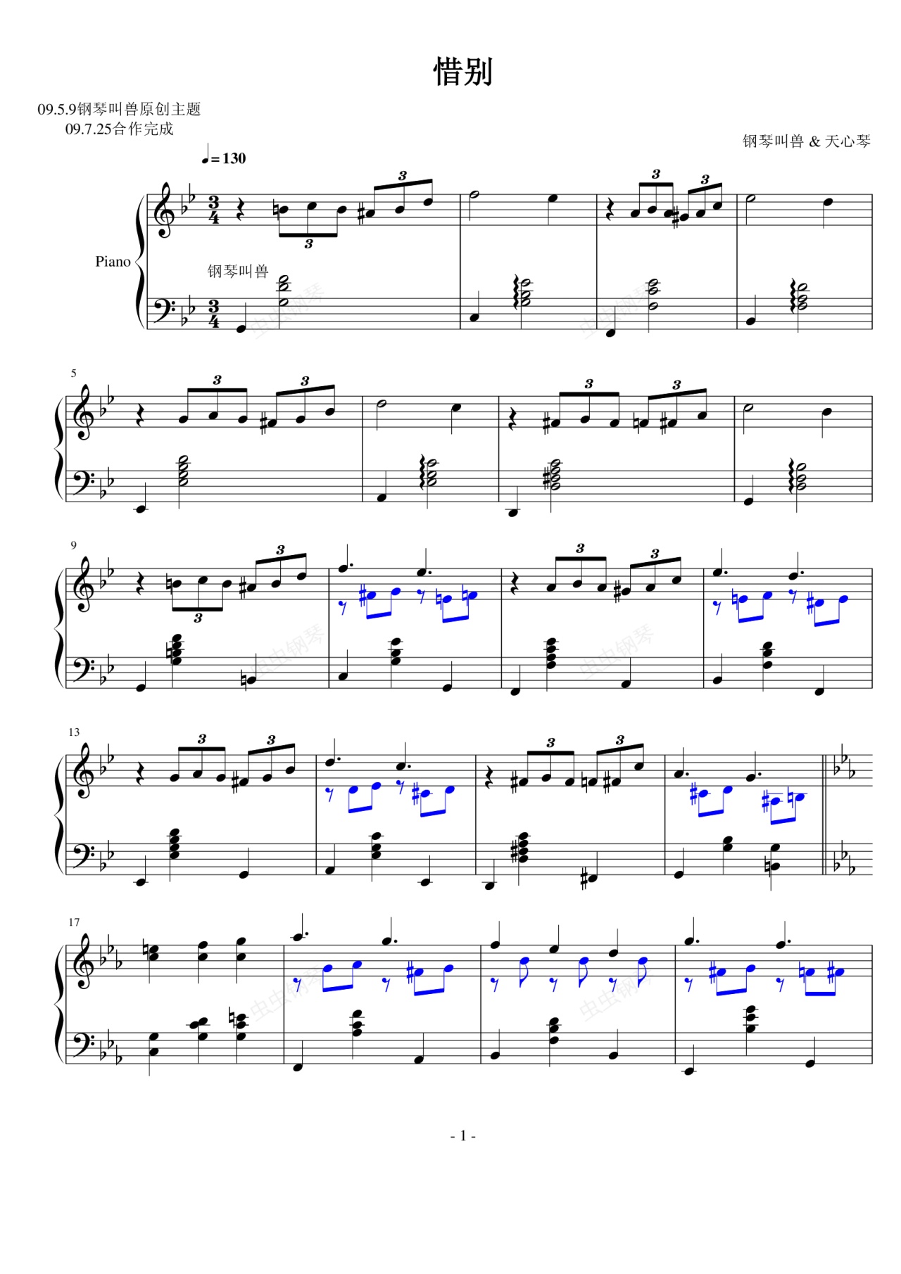 请管理员将此谱在天心琴和钢琴叫兽的作品栏目中各放一份,谢谢了!