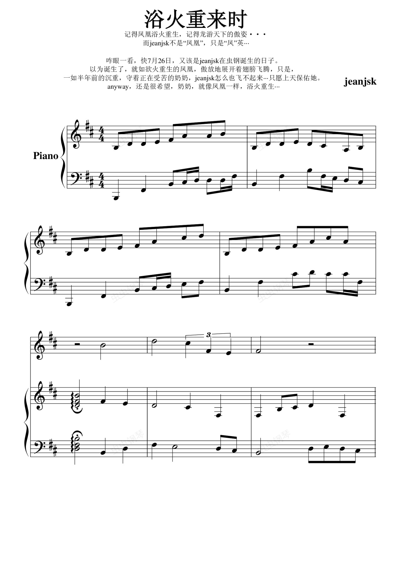 钢琴谱:浴火重生