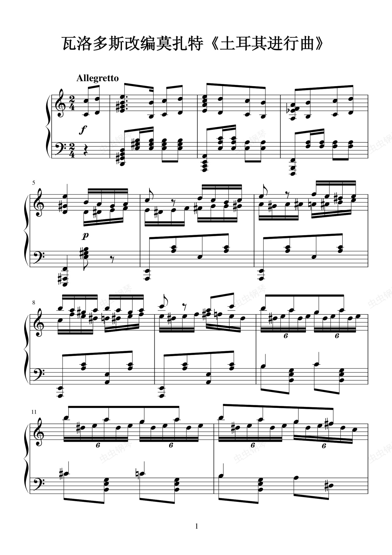 钢琴谱:瓦洛多斯改编莫扎特《土耳其进行曲》