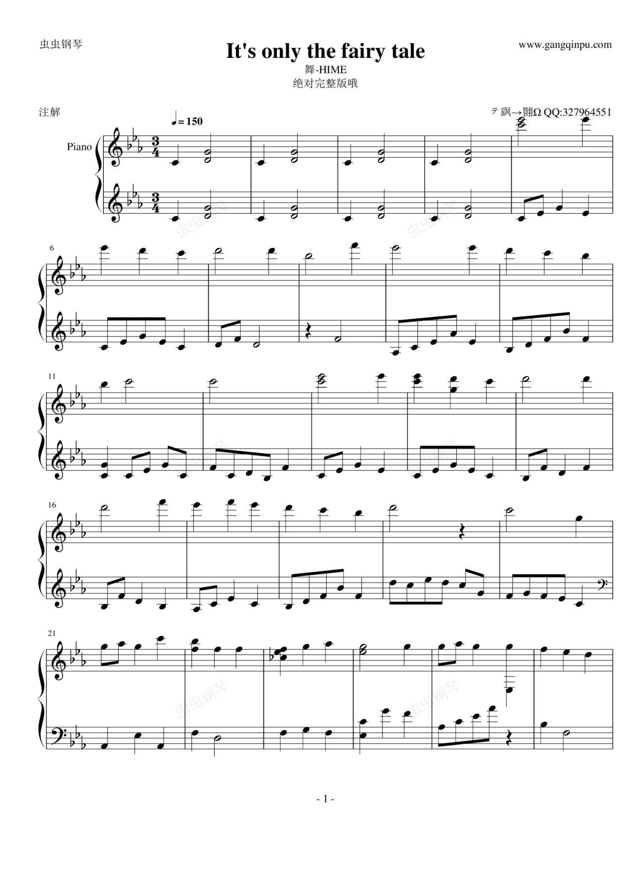 钢琴谱:It's only the fairy tale 完整版
