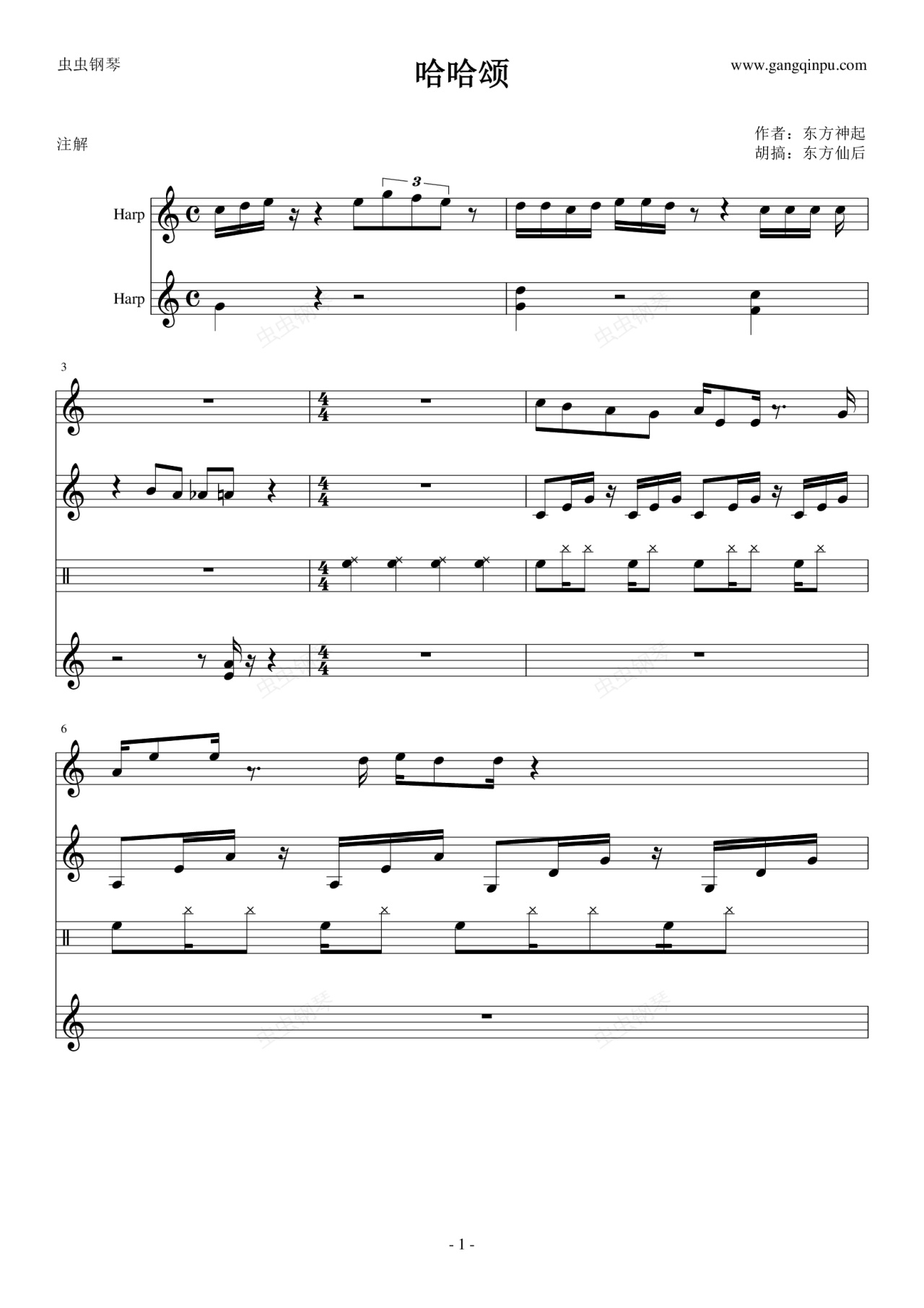 钢琴谱:哈哈颂