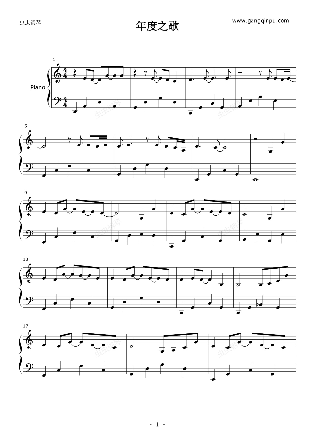 钢琴谱:年度之歌