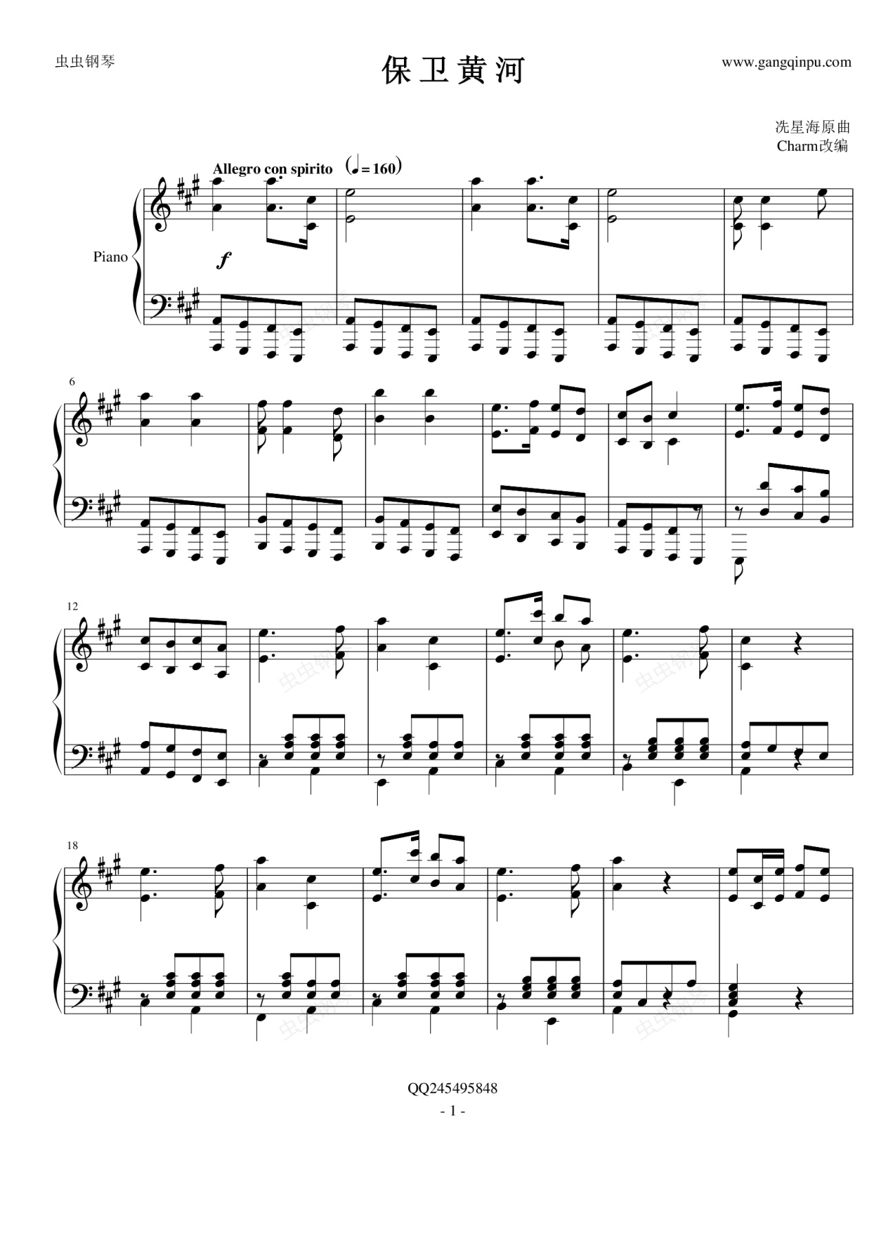 钢琴谱:保卫黄河