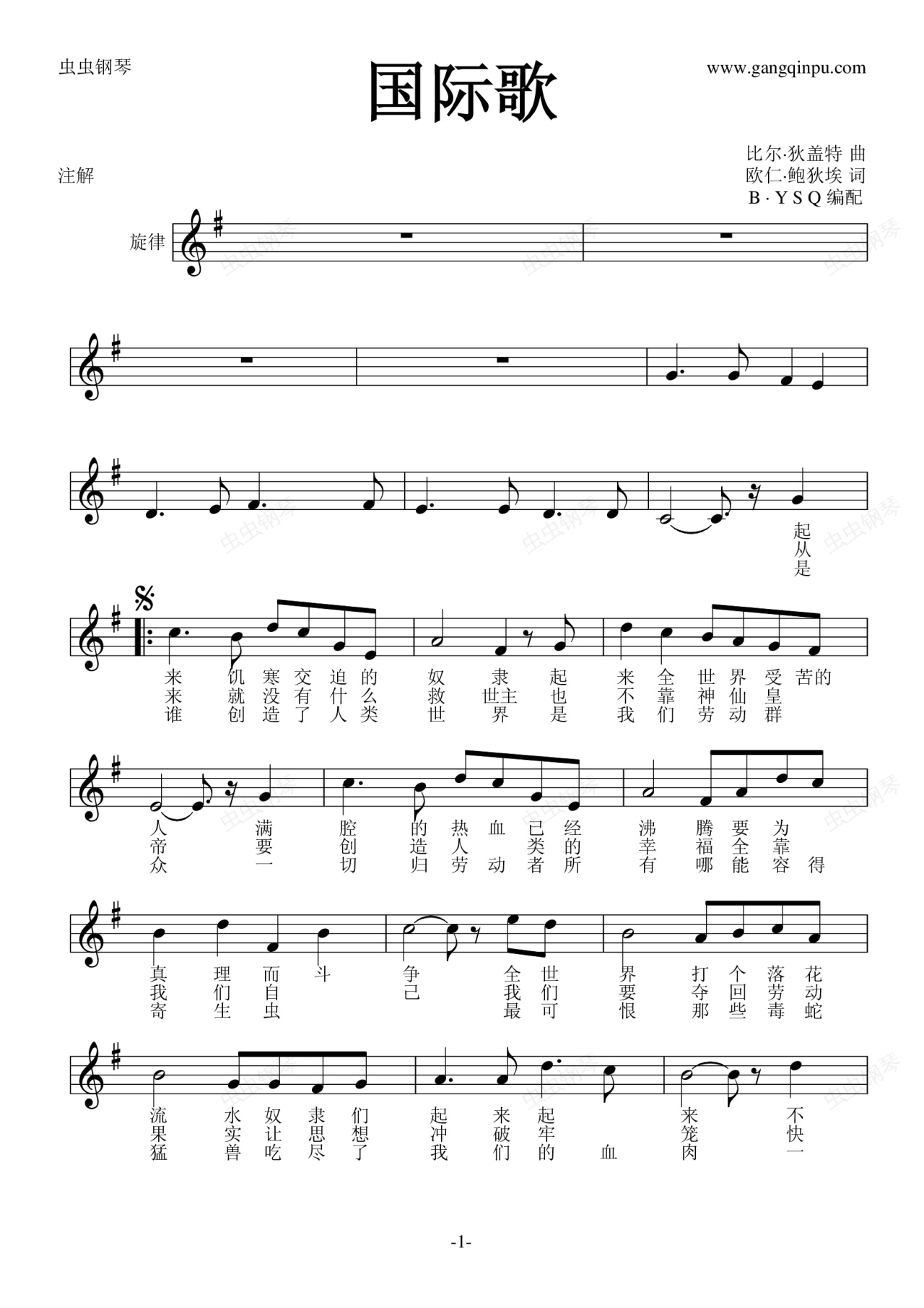 钢琴谱:国际歌