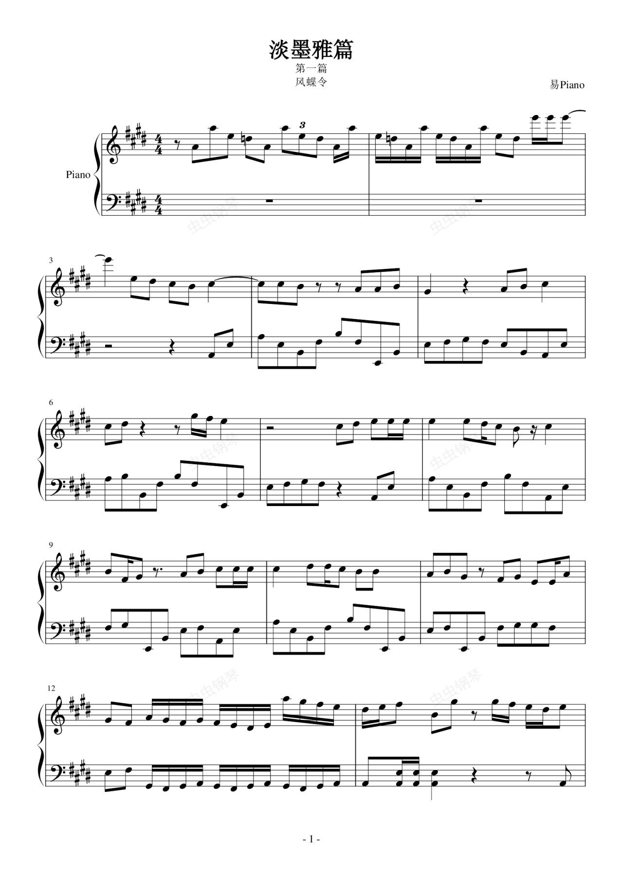 钢琴谱:淡墨雅篇-风蝶令