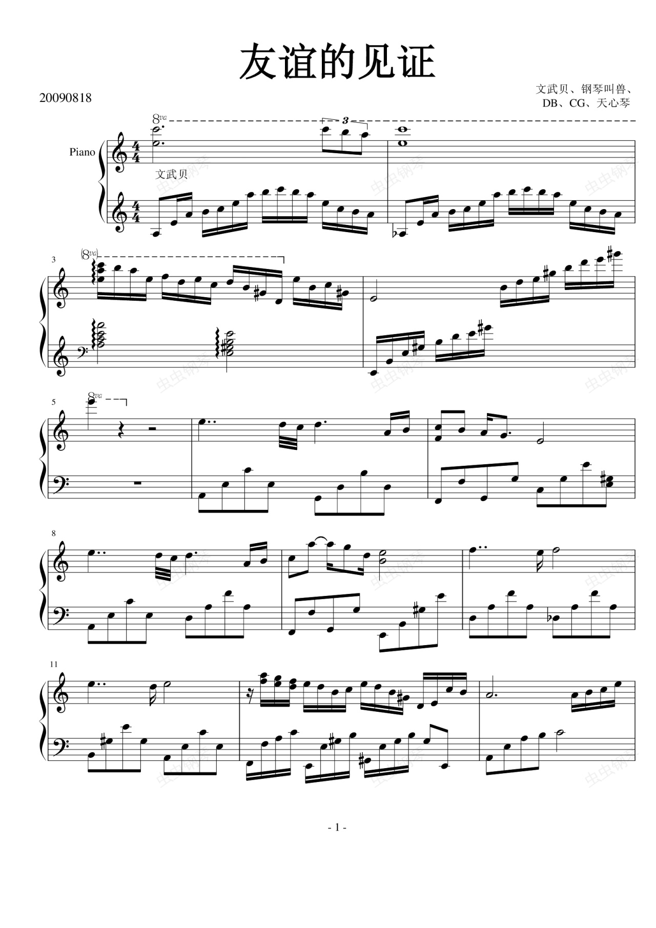 钢琴谱:友谊的见证