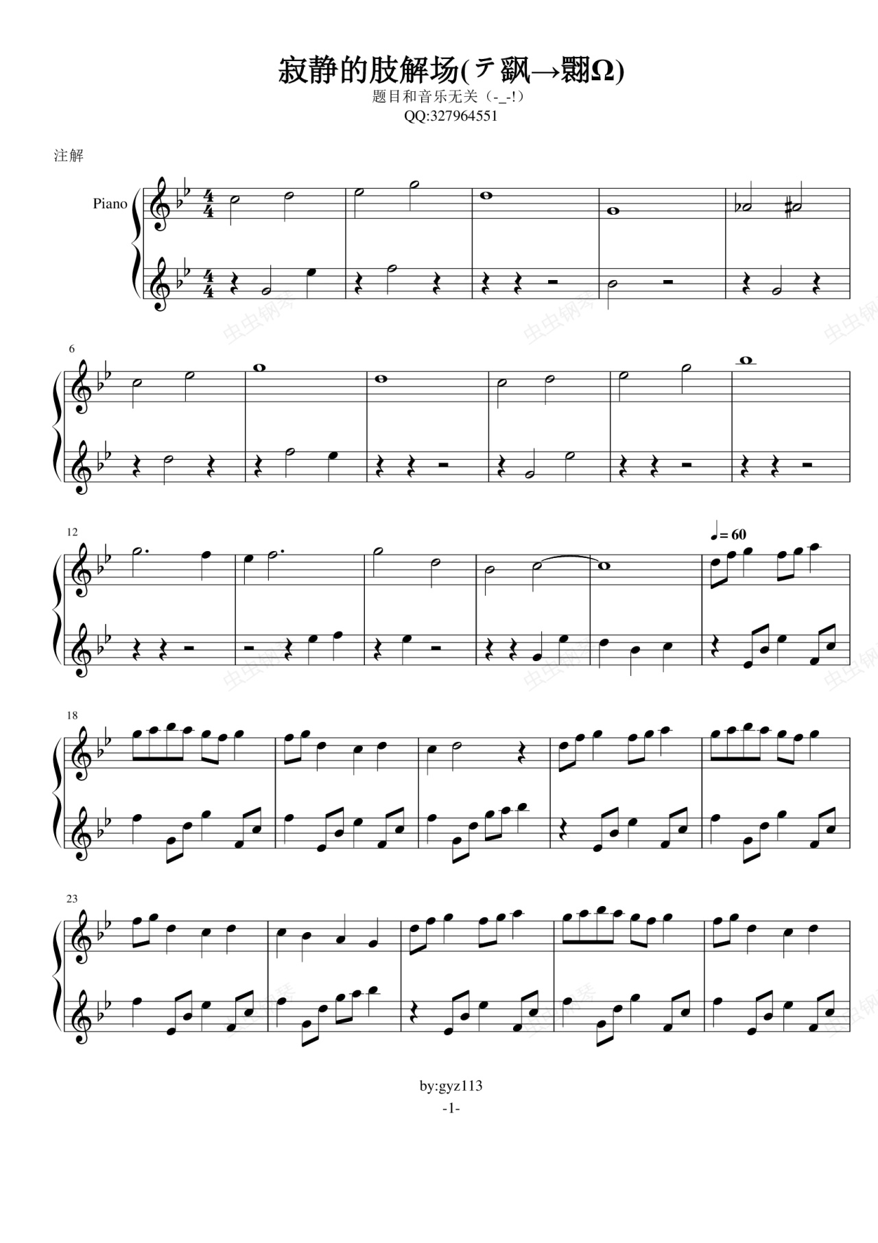 钢琴谱:寂静的肢解场(テ飖→翾Ω)