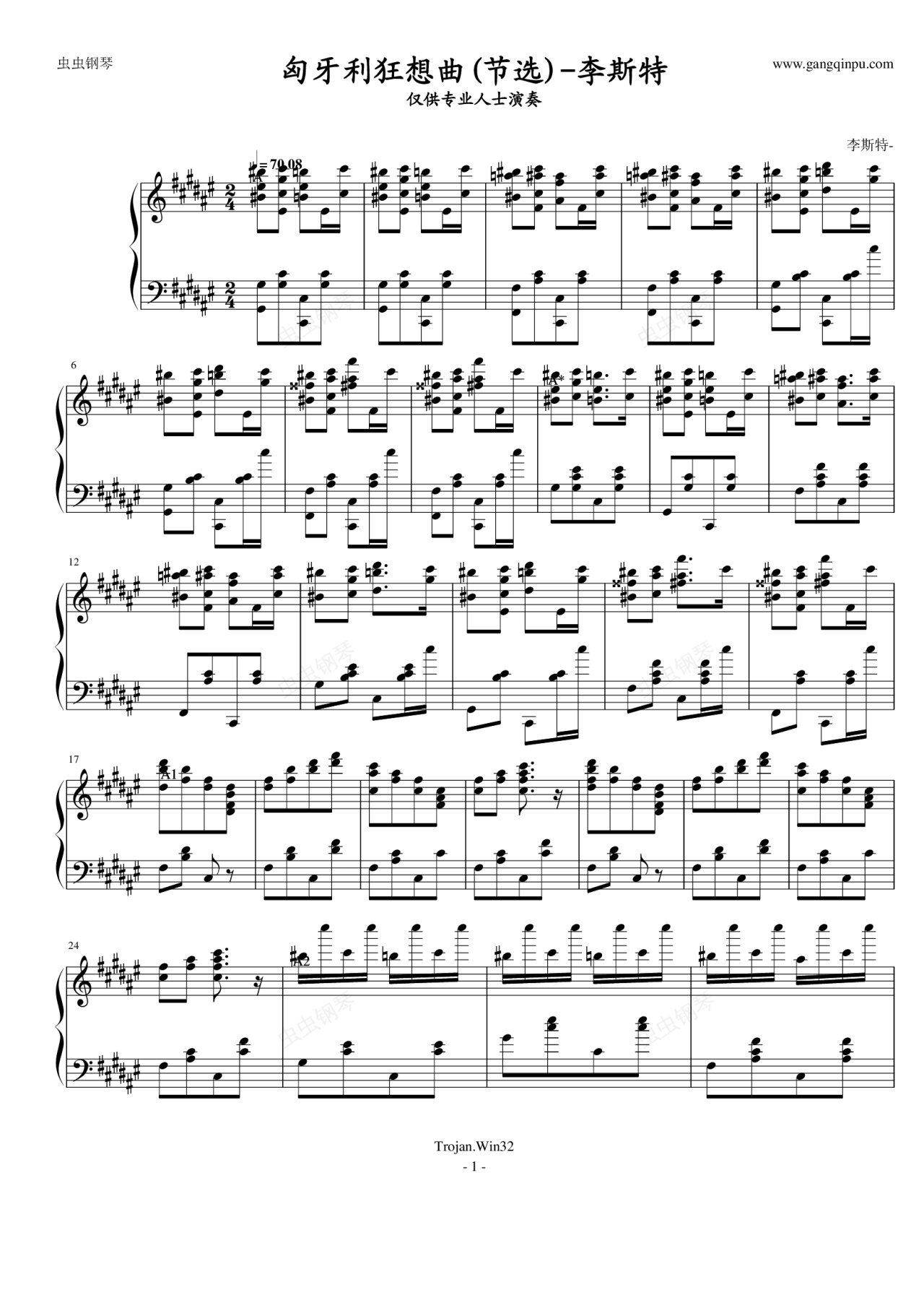 钢琴谱:匈牙利狂响曲(节选)