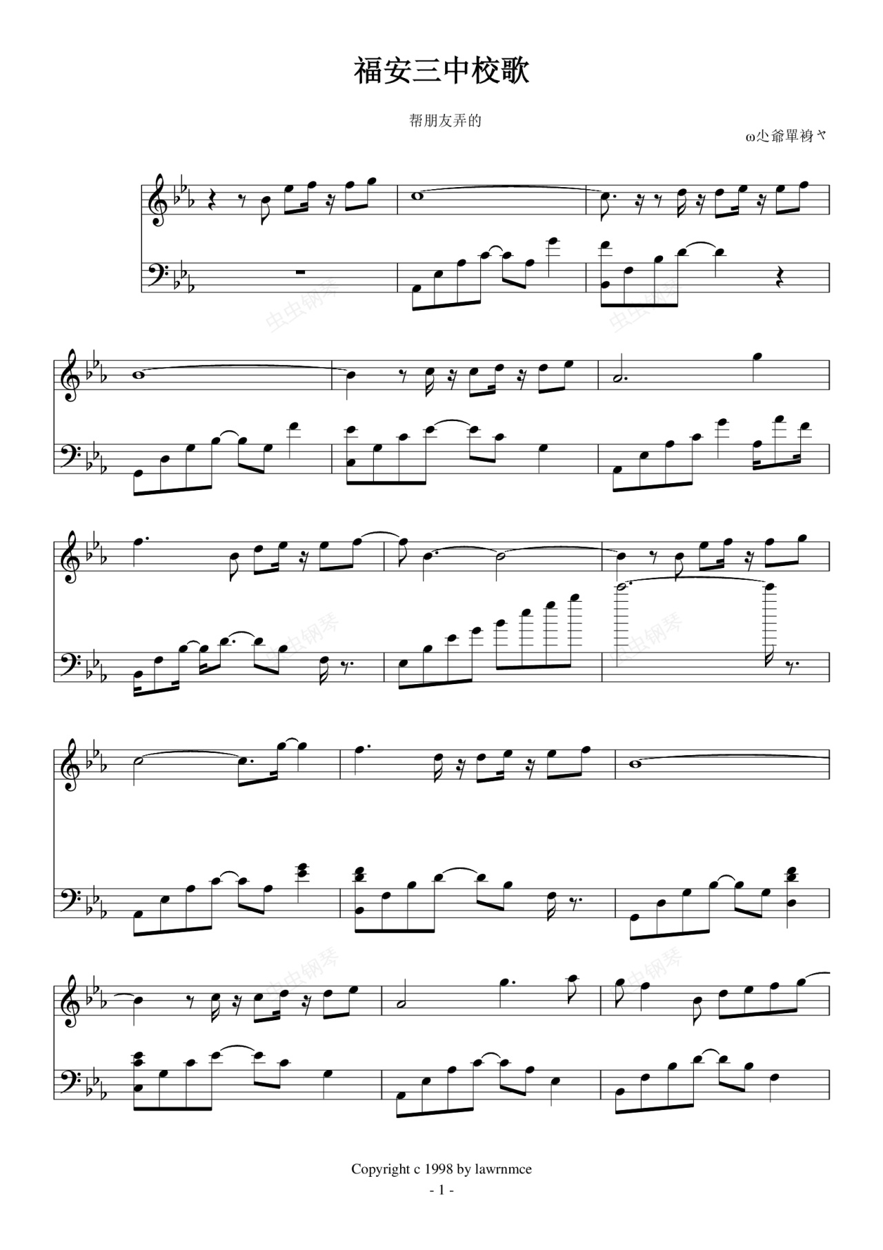 钢琴谱:福安三中校歌