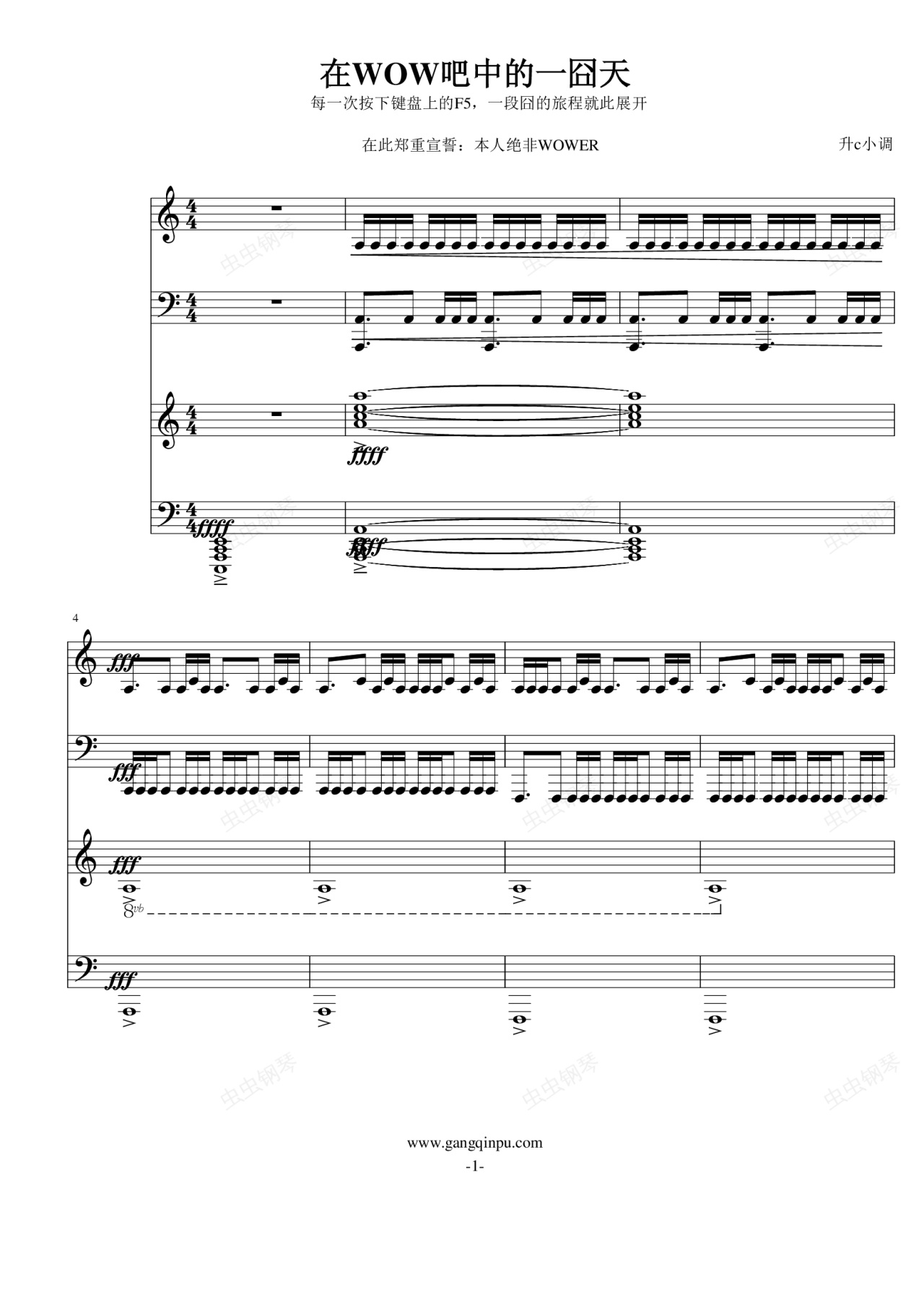 钢琴谱:在WOW吧中的一囧天