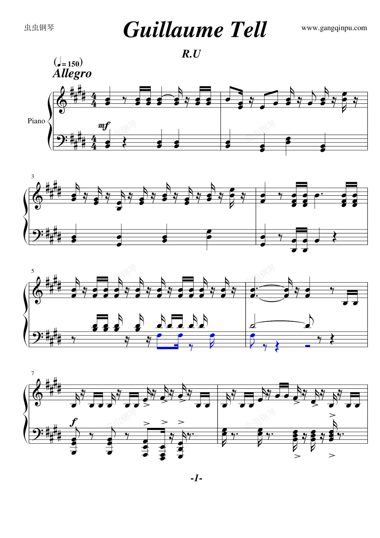 钢琴谱:威廉-退尔序曲