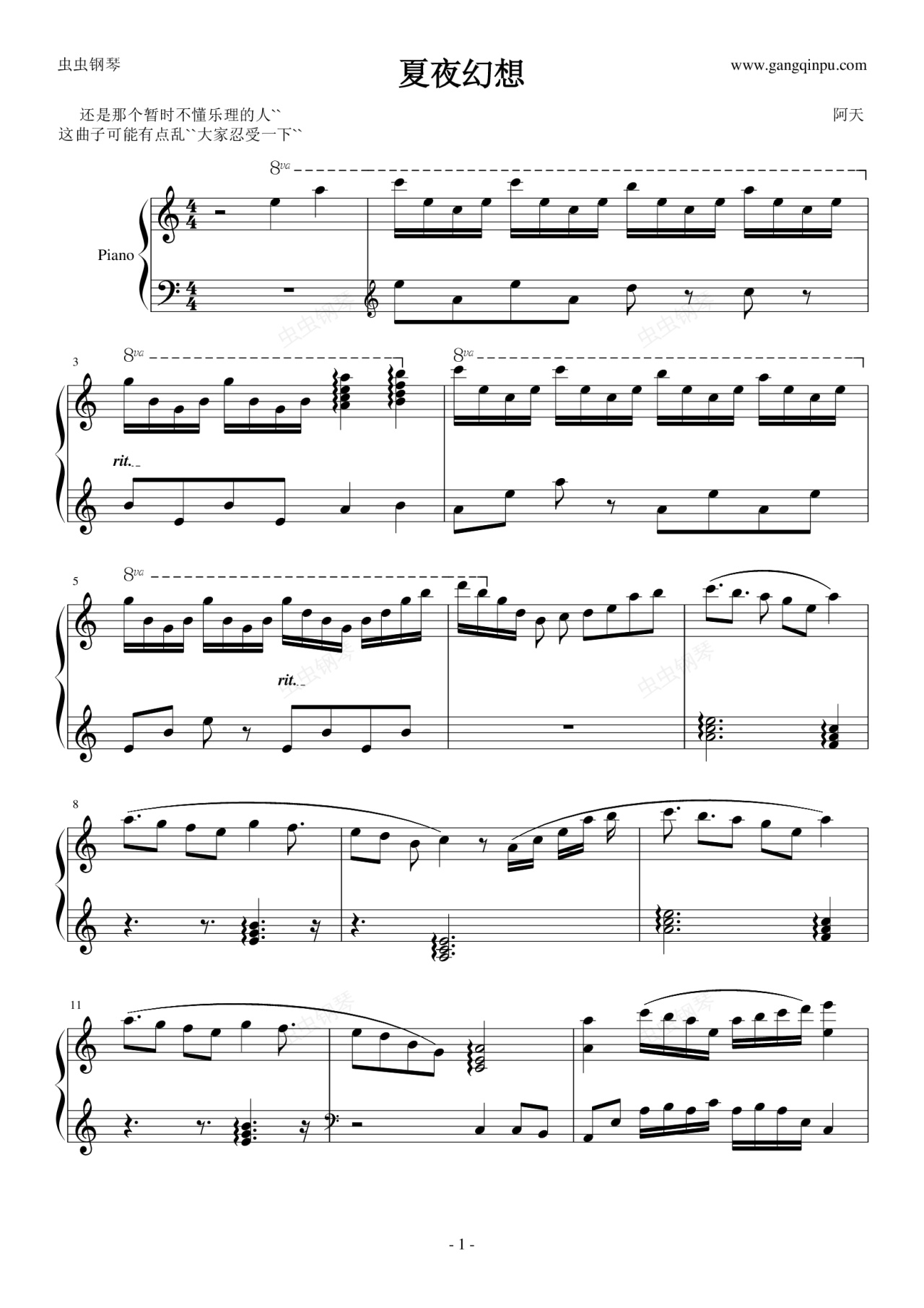 开始幻想```    在一个夏天的夜晚,天空飘着雨,不一会儿,雨越来越小了,“滴答滴答……”,就在雨将要停滴时候,突然狂风袭来,天空顿时大雨倾盆,还伴随着轰隆隆的雷声,然而很快,一切都已远去,天空又恢复了宁静……    雨后的夜空真是格外明亮,几朵云悠闲的飘着,还有一些星星调皮的眨着眼睛,这又是一个美好的夜晚`` (个人认为这不是幻想,纯属乱想,大家多包涵下喔`~) 马上高中了,玩的时间就少了,所以借此娱乐一下, 这是我的第二个作品,不懂乐理滴我依然是靠感觉编出来滴, 等我以后学了乐理,一定要编出好滴曲子oO(∩_∩)Oo```` 在此感谢鼓励我滴人``