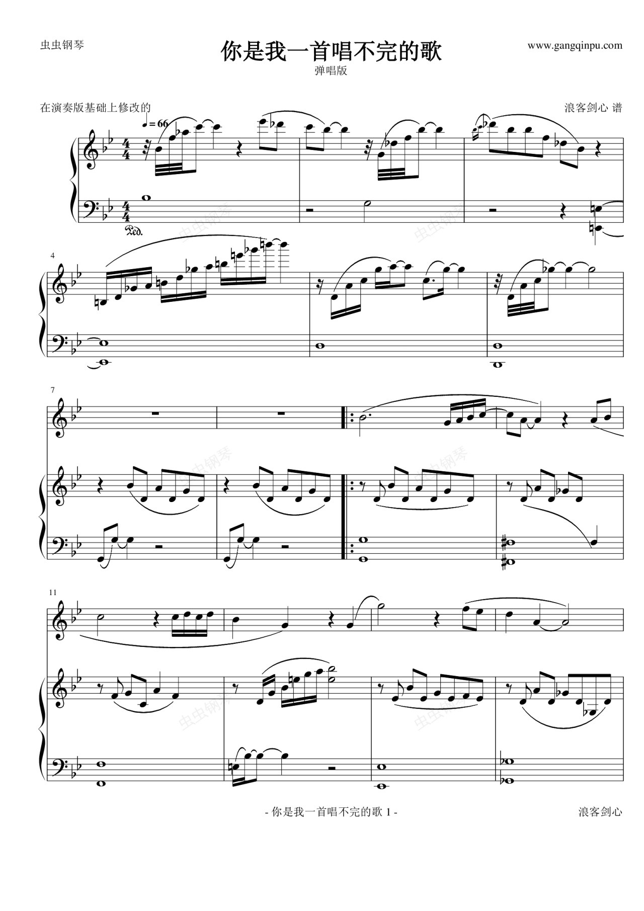 钢琴谱:你是我一首唱不完的歌 弹唱 仙剑三