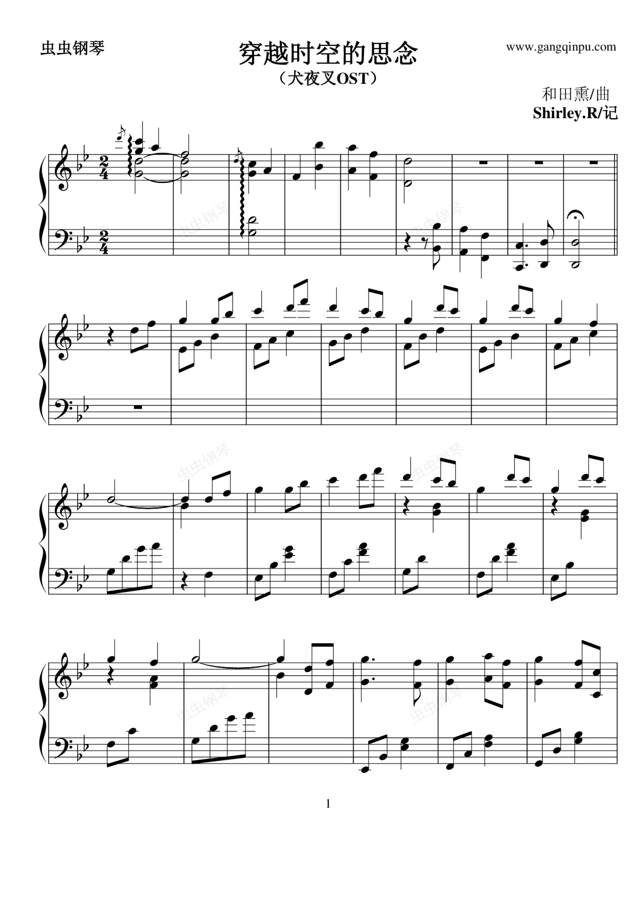 钢琴谱:穿越时空的思念(犬夜叉OST)--清爽版