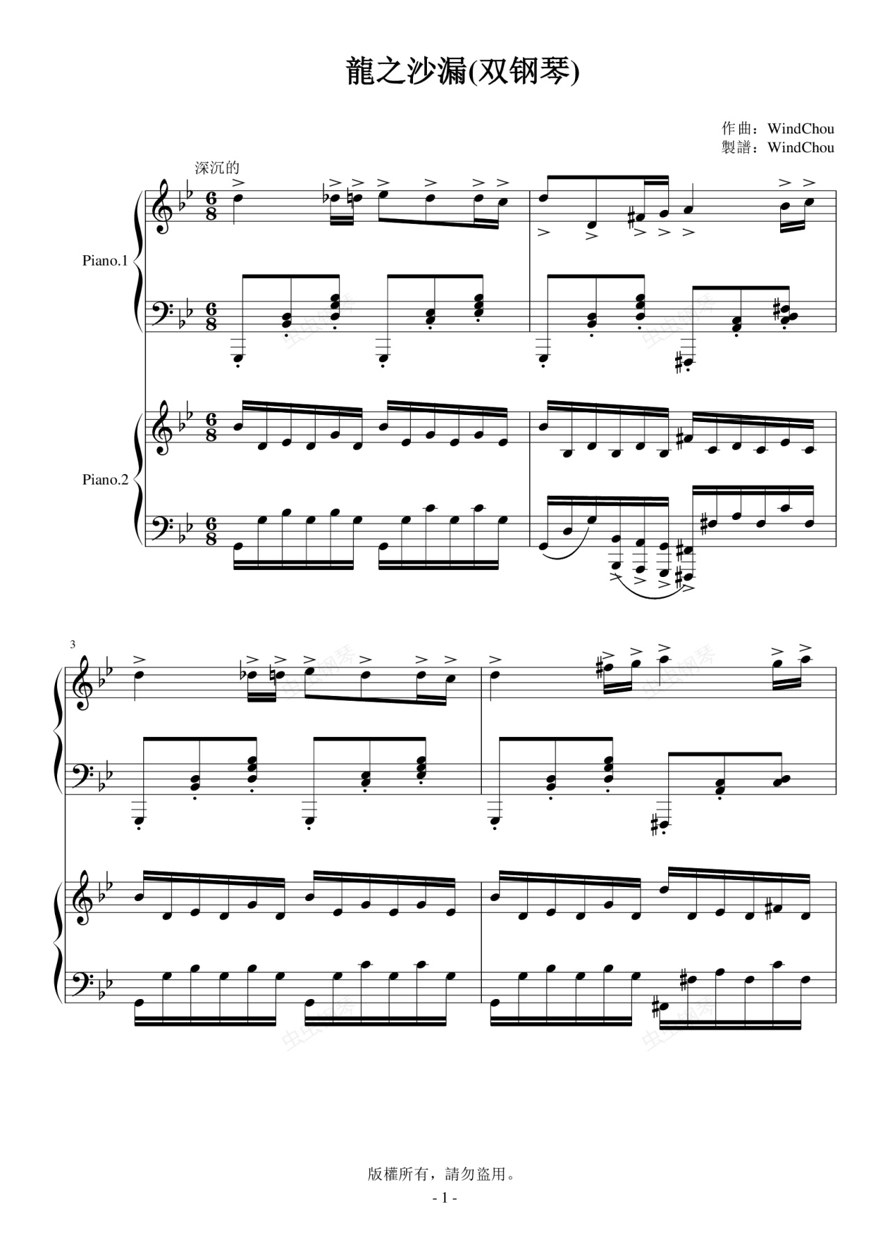 钢琴谱:龙之沙漏(双钢琴斗琴版)