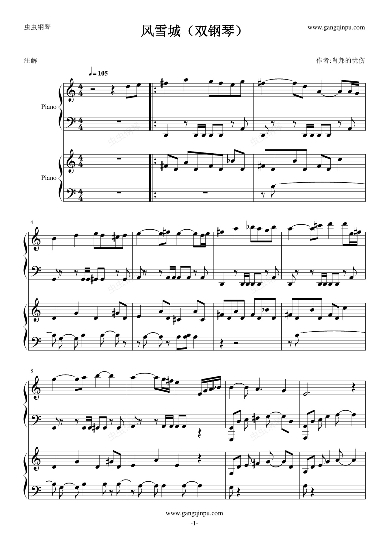 钢琴谱:口袋妖怪-风雪城(双钢琴)