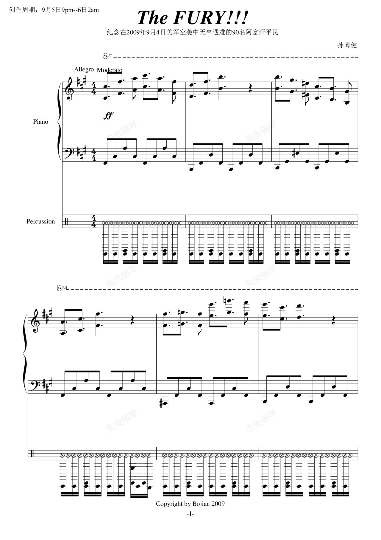 钢琴谱:怒火中烧——纪念在9.4空袭中罹难的90名阿富汗平民