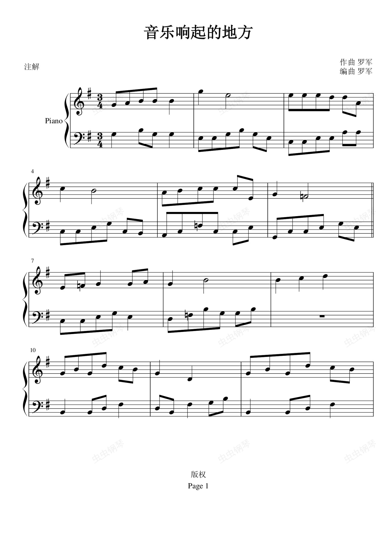钢琴谱:音乐响起的地方