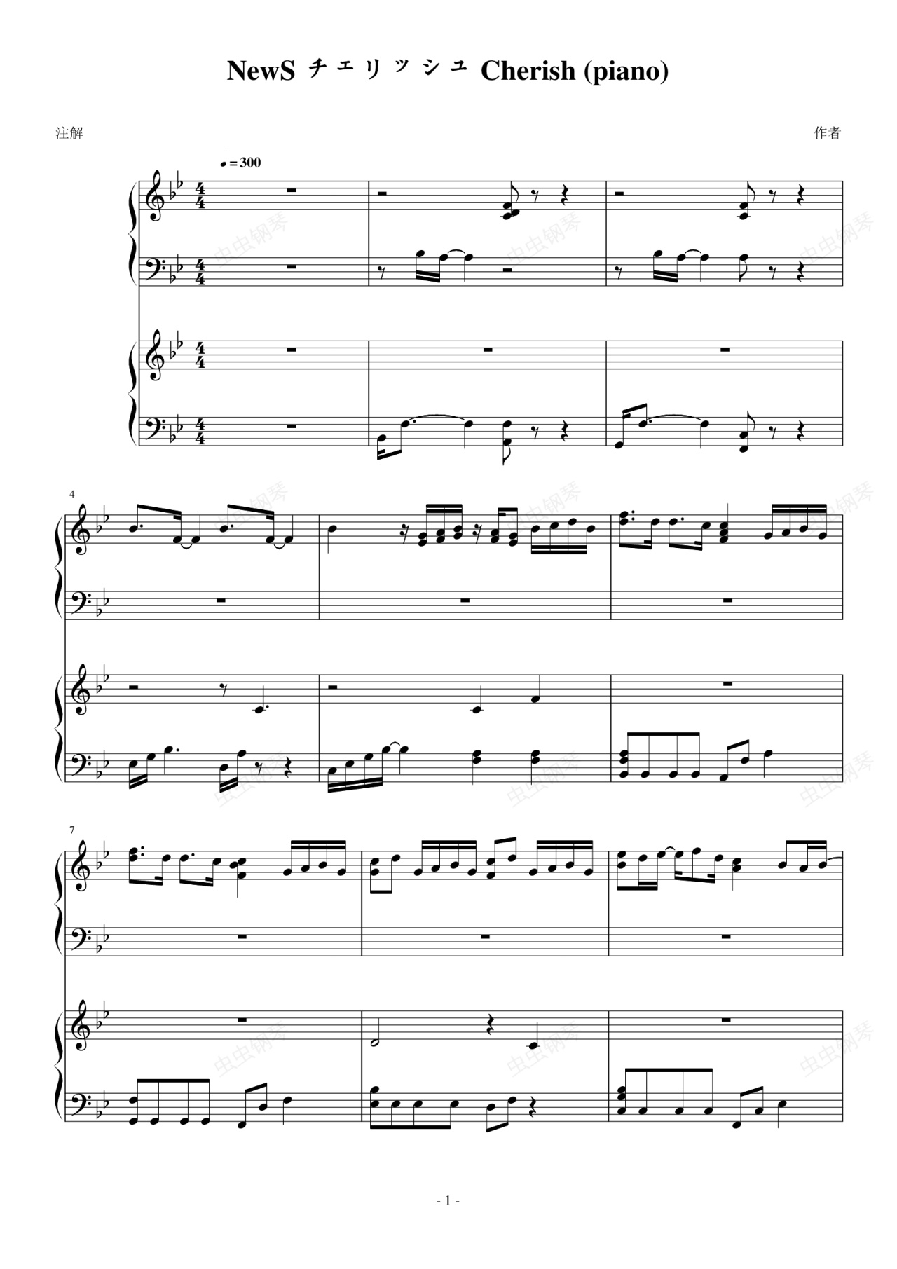 钢琴谱:チェリッシュ_Cherish_(piano)