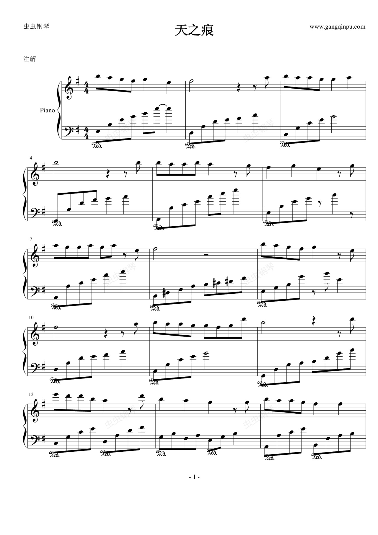 钢琴谱:三个人的时光《天之痕》纯音乐