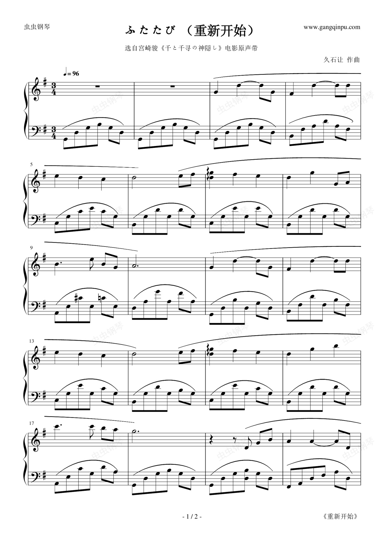 钢琴谱:ふたたび (重新开始) - 《千と千寻の神隠し》