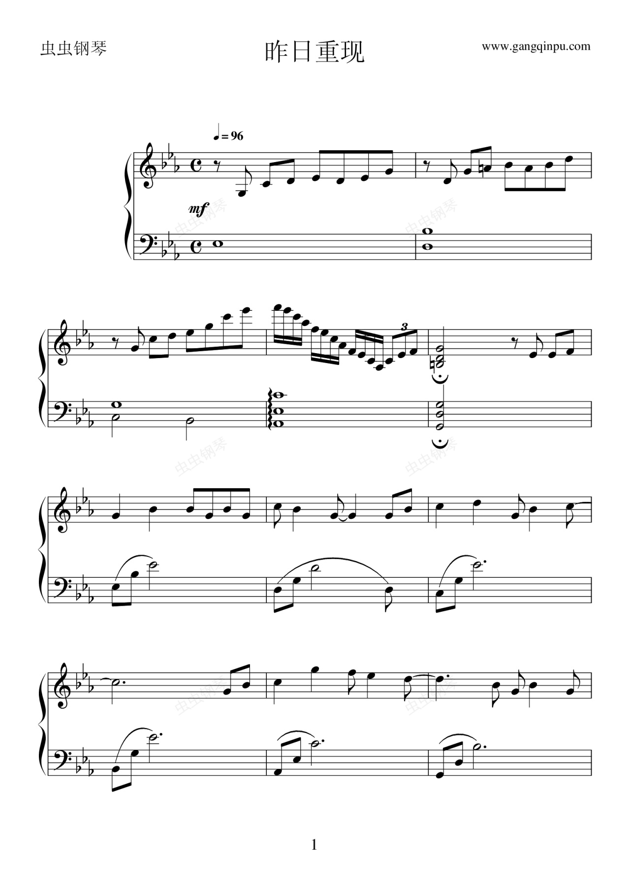 钢琴谱:昨日重现