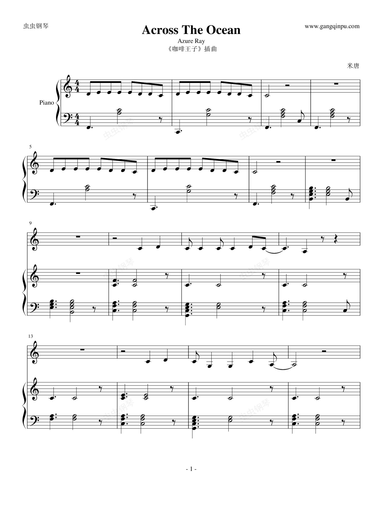 钢琴谱:(咖啡王子1号店-插曲)Across The Ocean