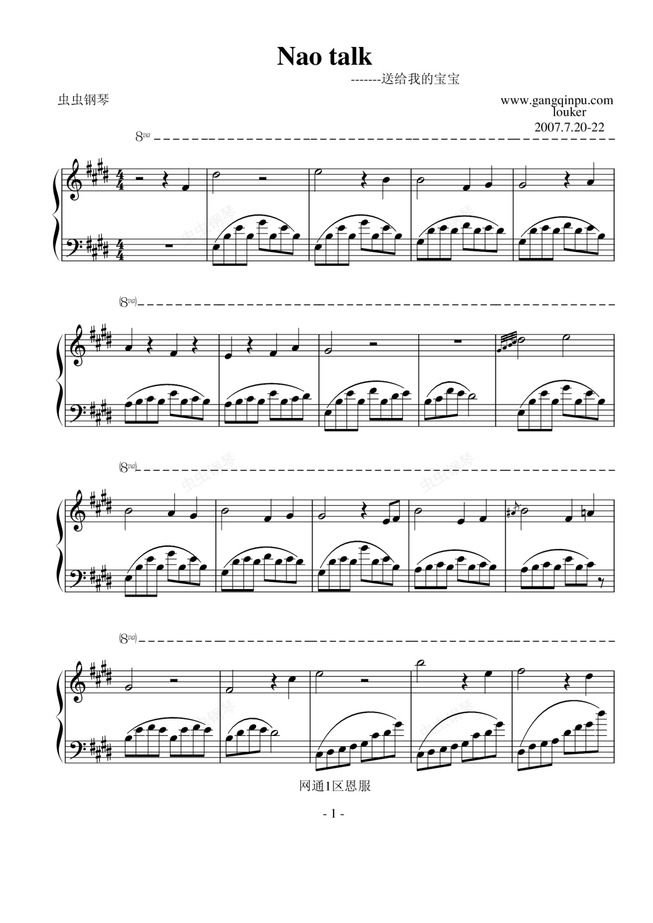 钢琴谱:nao talk [mabinogi洛奇]
