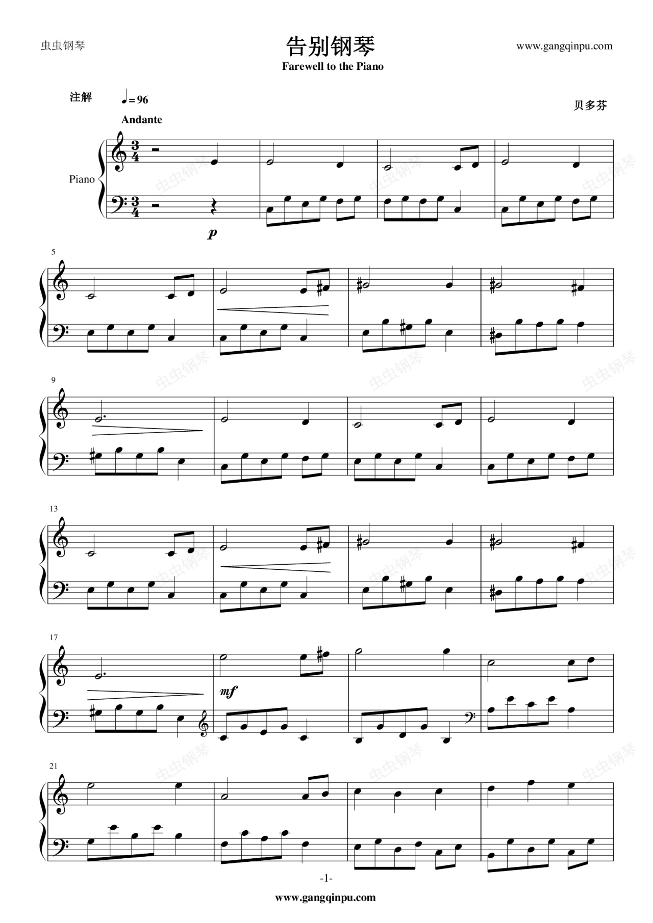 钢琴谱:告别钢琴