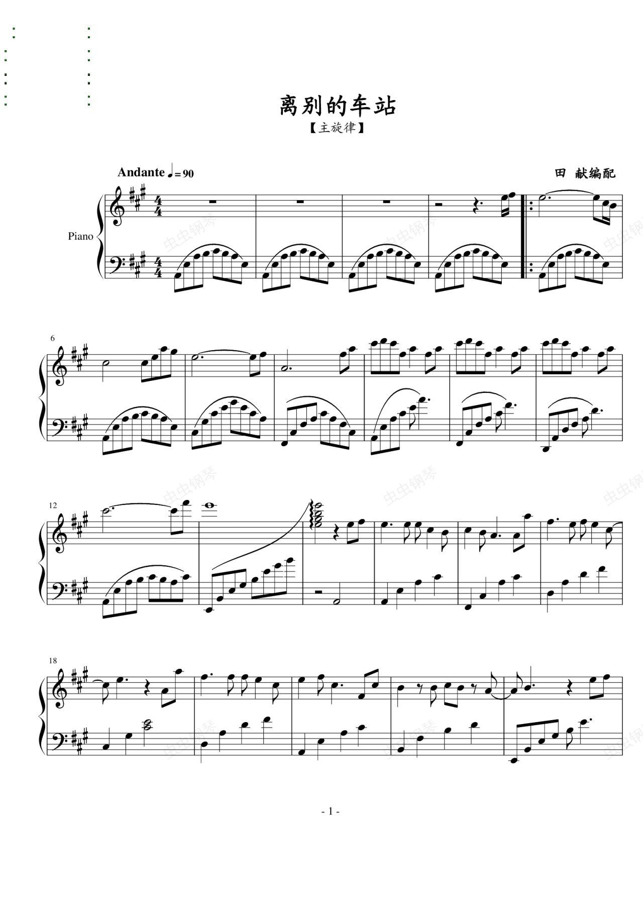 钢琴谱:离别的车站