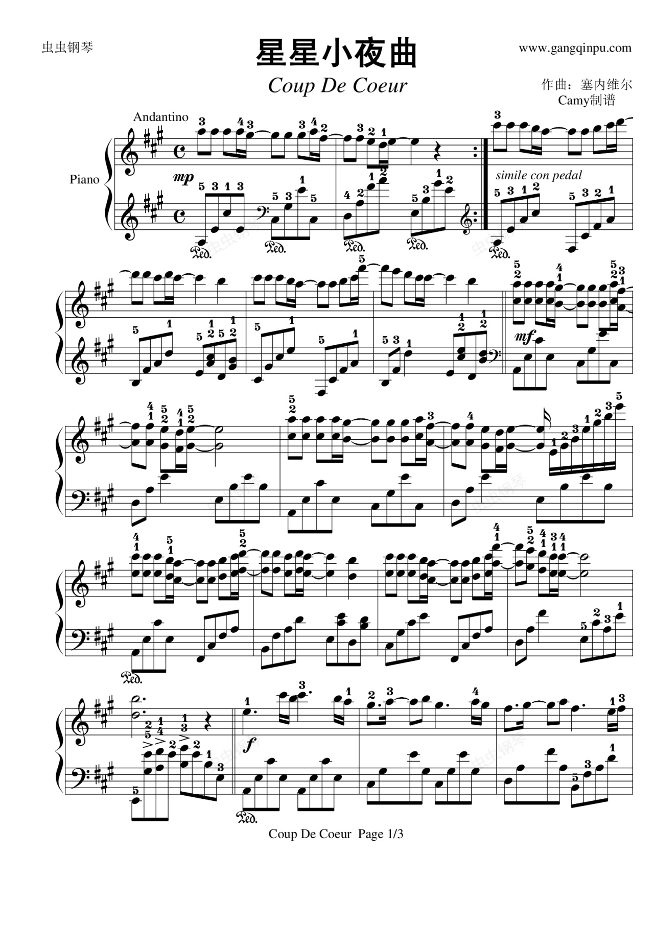 钢琴谱:星星小夜曲-带指法