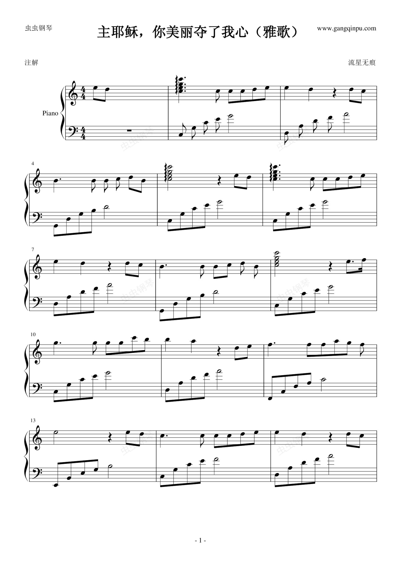 钢琴谱:主耶稣,你美丽夺了我心(雅歌)