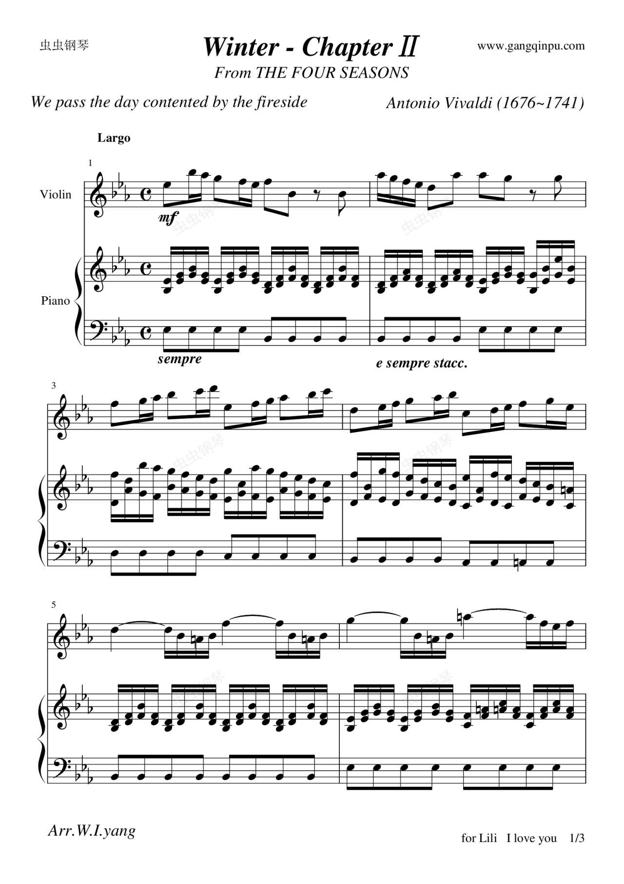 钢琴谱:四季·冬之第二乐章 钢琴+小提琴