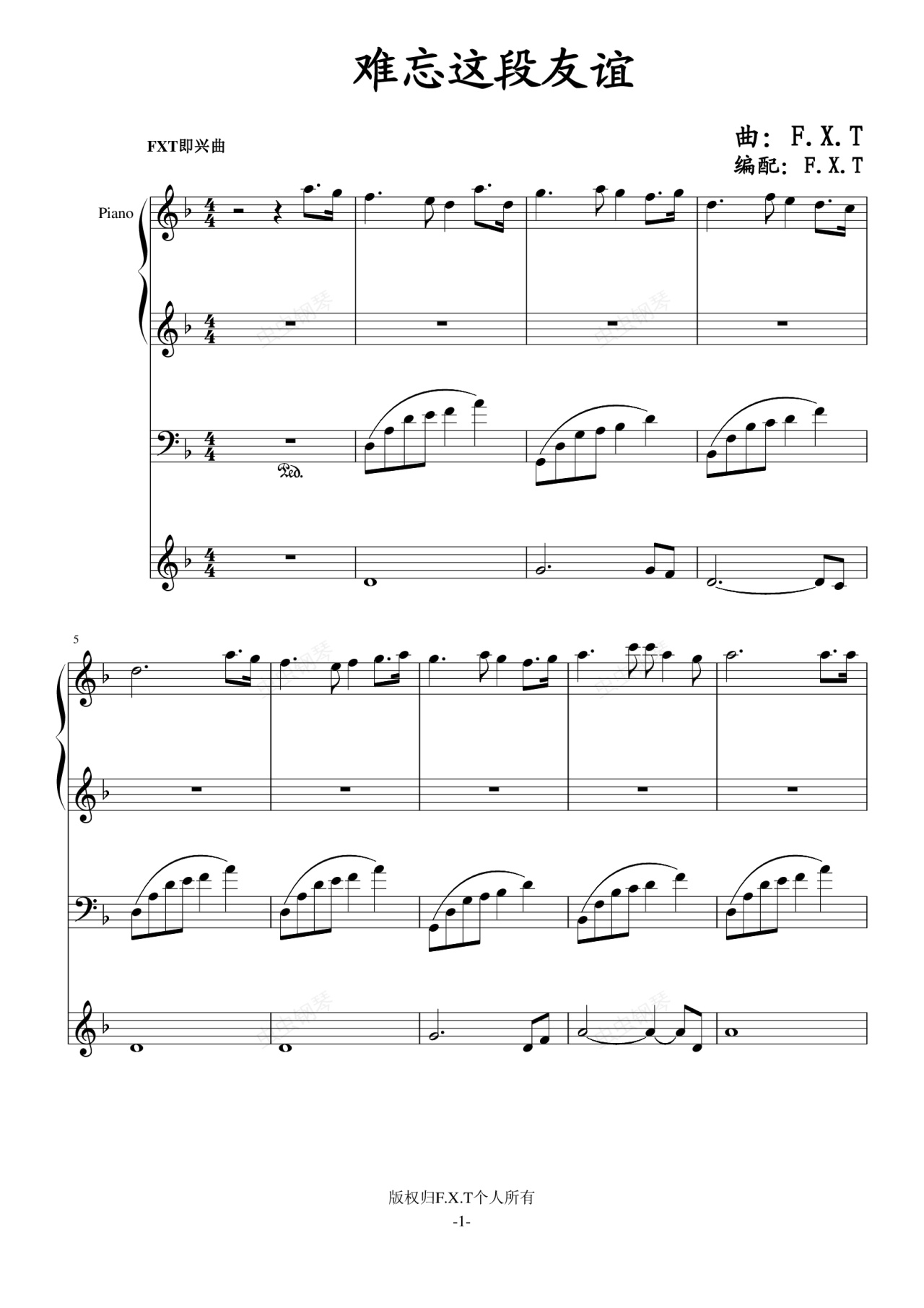 即兴之作,原本不想做上来,出于这句话的冲动,就把这首即兴曲发上来了,哈~第一次尝试使用钢琴意外的乐器,还不会怎么编配,所以肯定还不是很好的,请大家指教啦~O(∩_∩)O~
