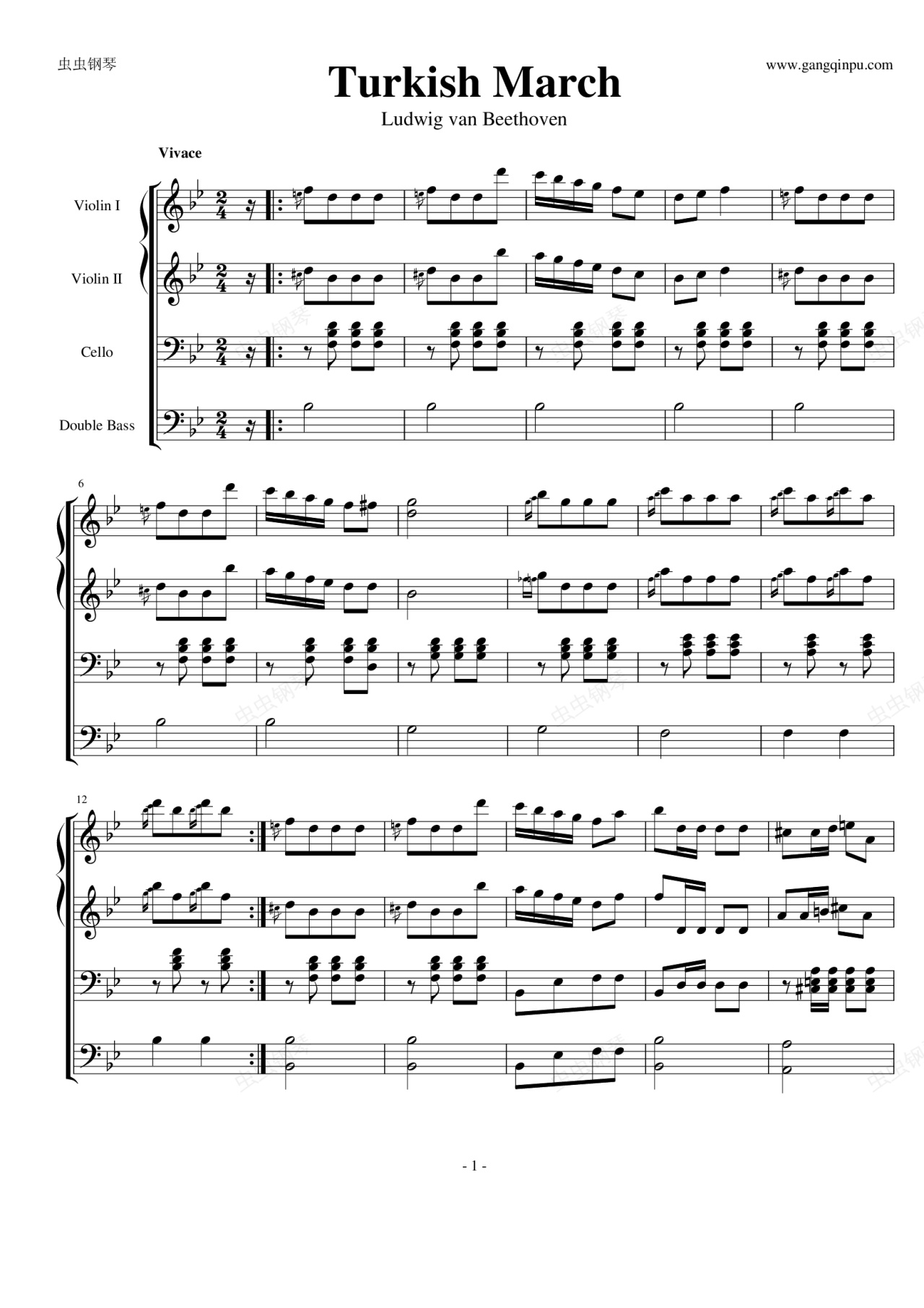 钢琴谱:《土耳其进行曲》弦乐四重奏