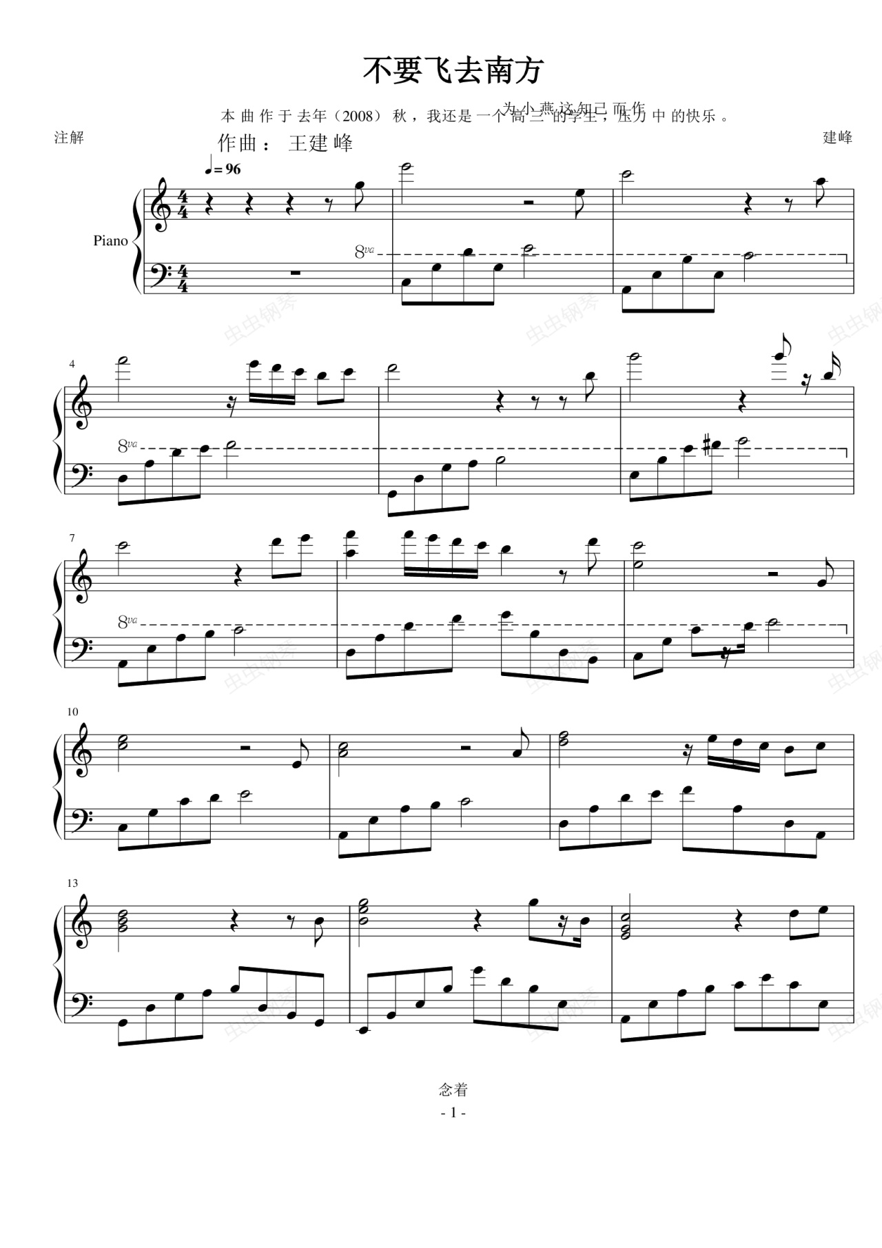 您的位置: 首页 > 钢琴谱库 > 不要飞去南方