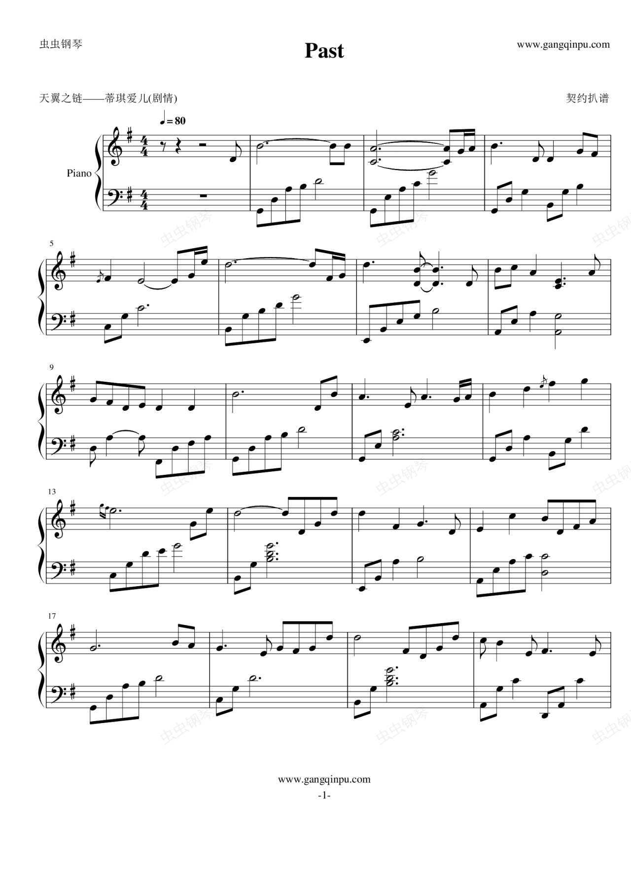 钢琴谱:天翼之链——Past