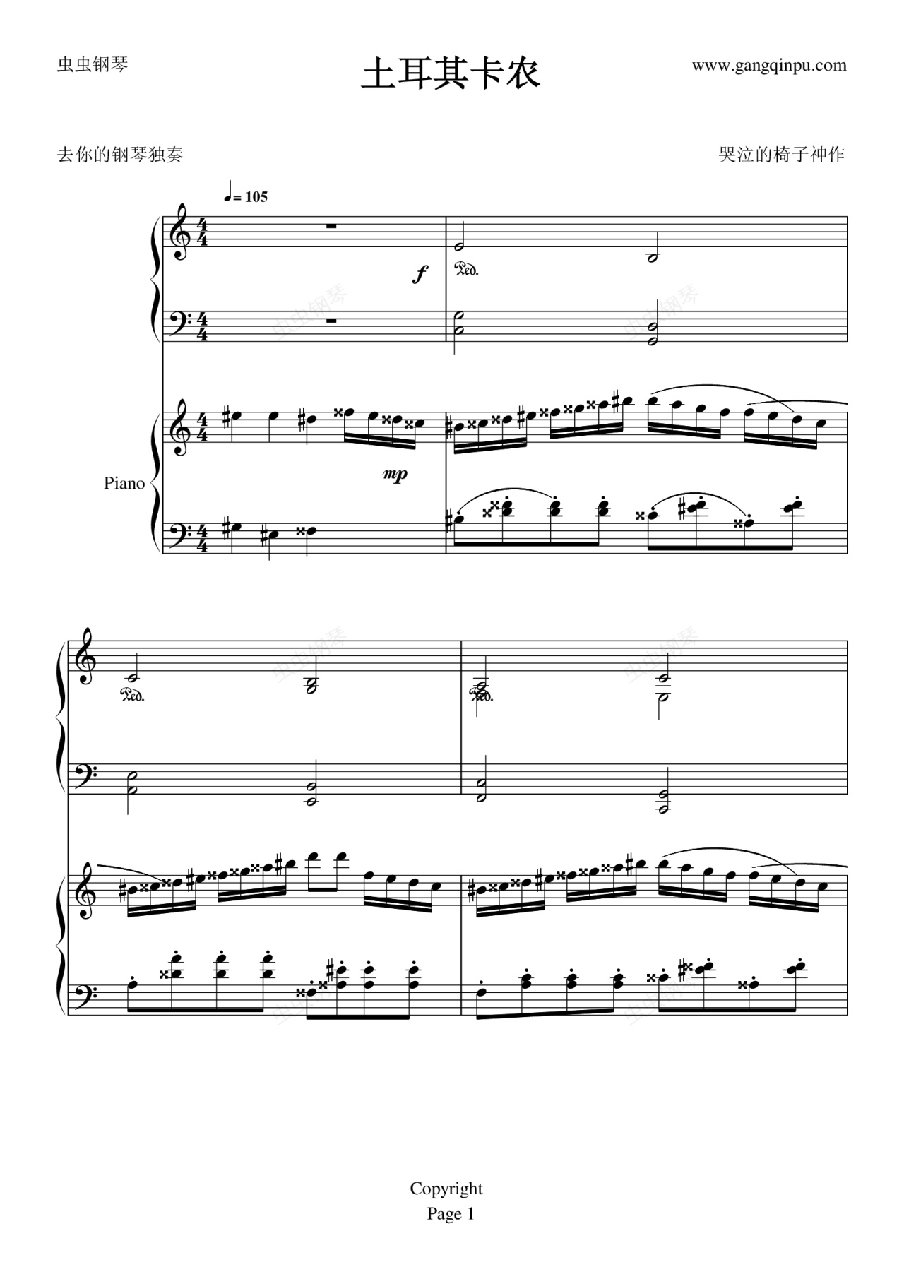 钢琴谱:土耳其进行曲——卡农